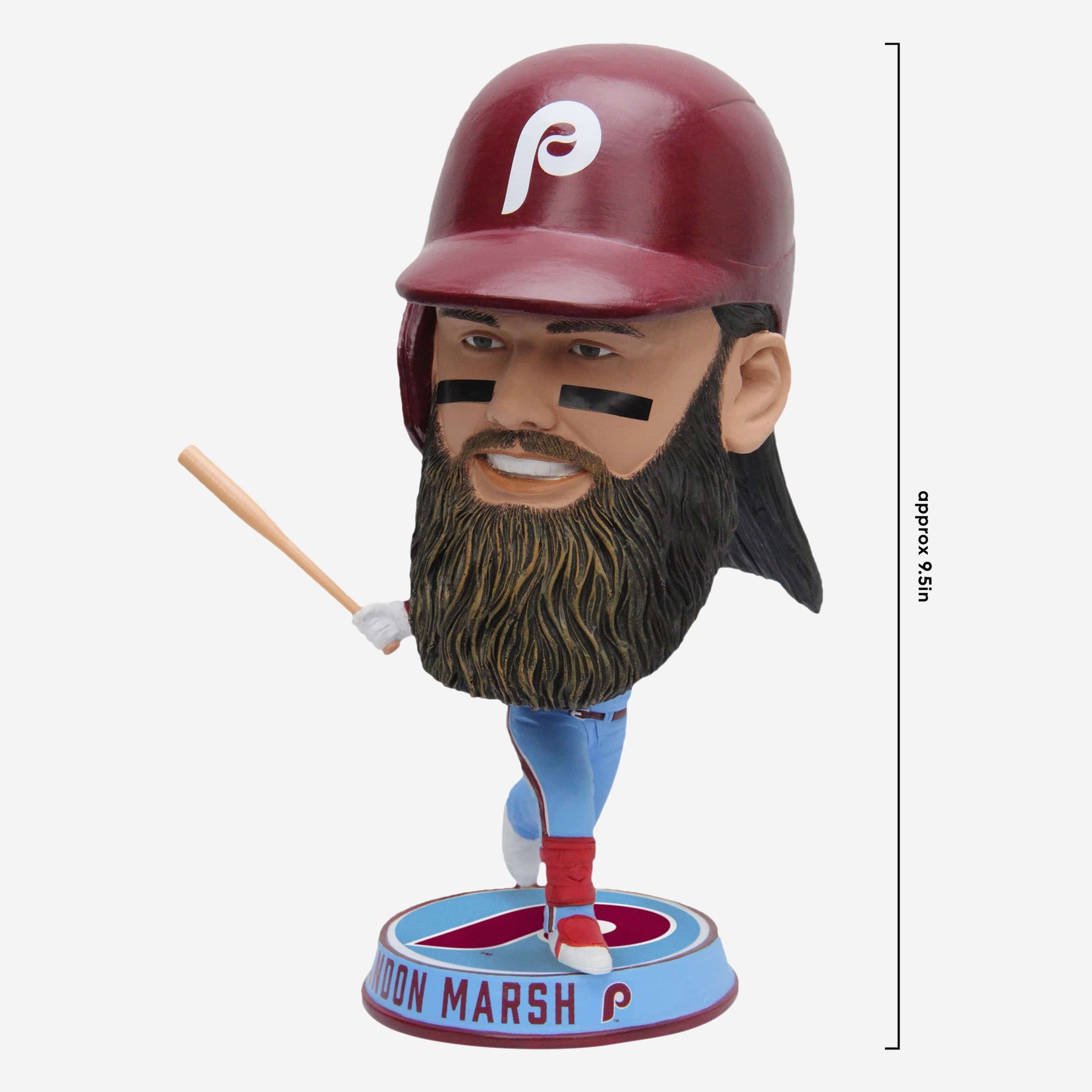 Bring some powder blue power to your lineup from The Bank to your fancave. Introducing the Brandon Marsh Philadelphia Phillies Powder Blue Uniform Bighead Bobblehead.
