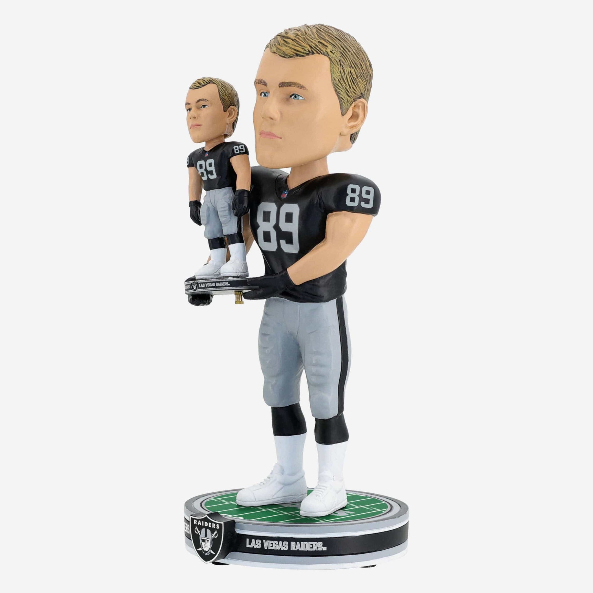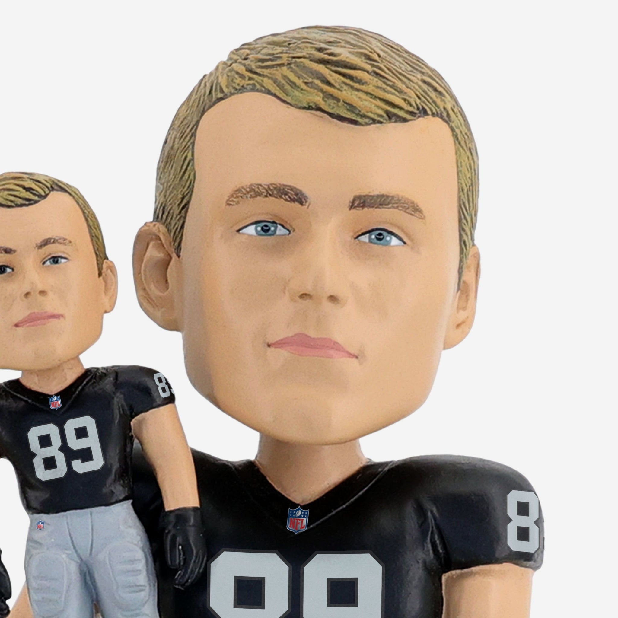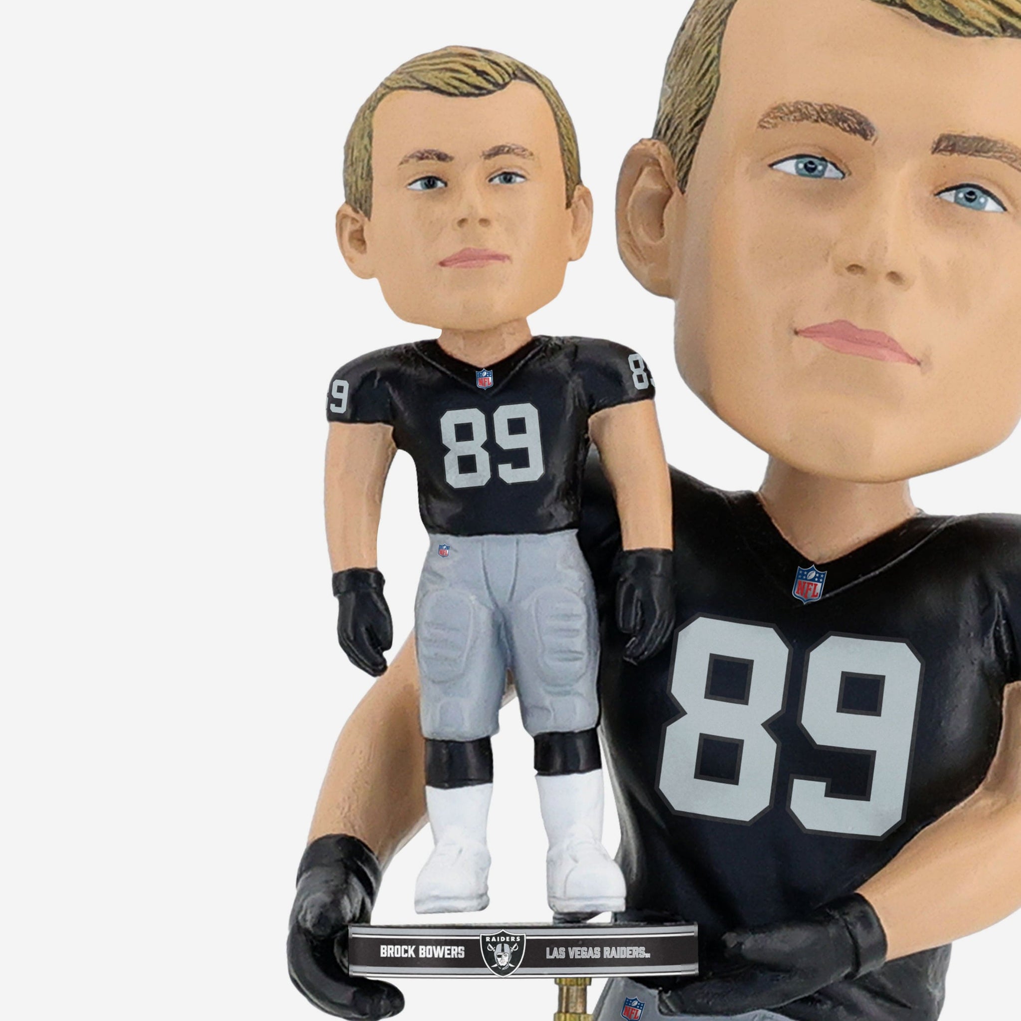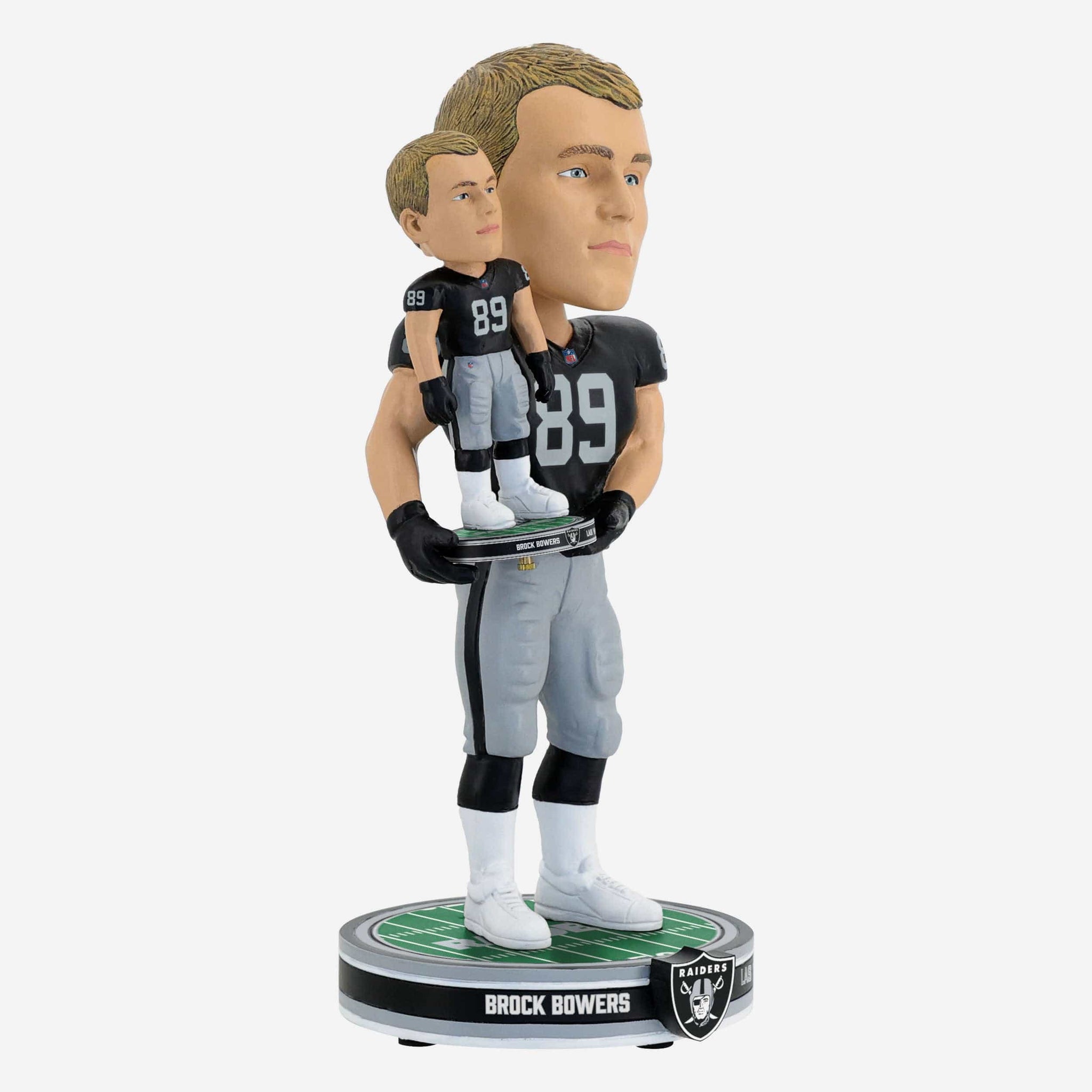 A double dose of your favorite player! Become twice the fan with this Brock Bowers Las Vegas Raiders Bobble Dubblz Bobblehead.