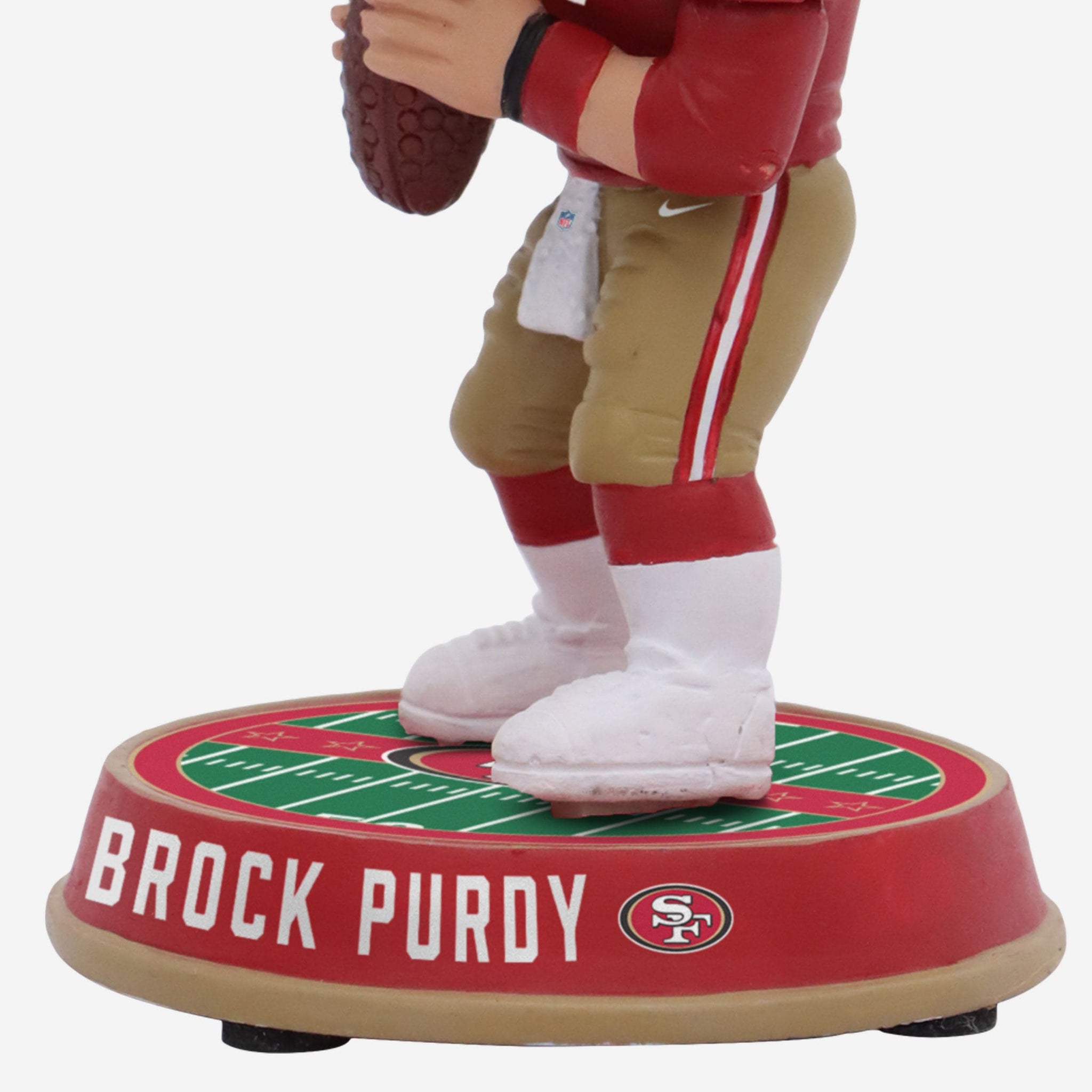Faithful to The Bay, at any size. Get ready for some big-time throws in miniature out of this Brock Purdy San Francisco 49ers Field Stripe Mini Bighead Bobblehead.