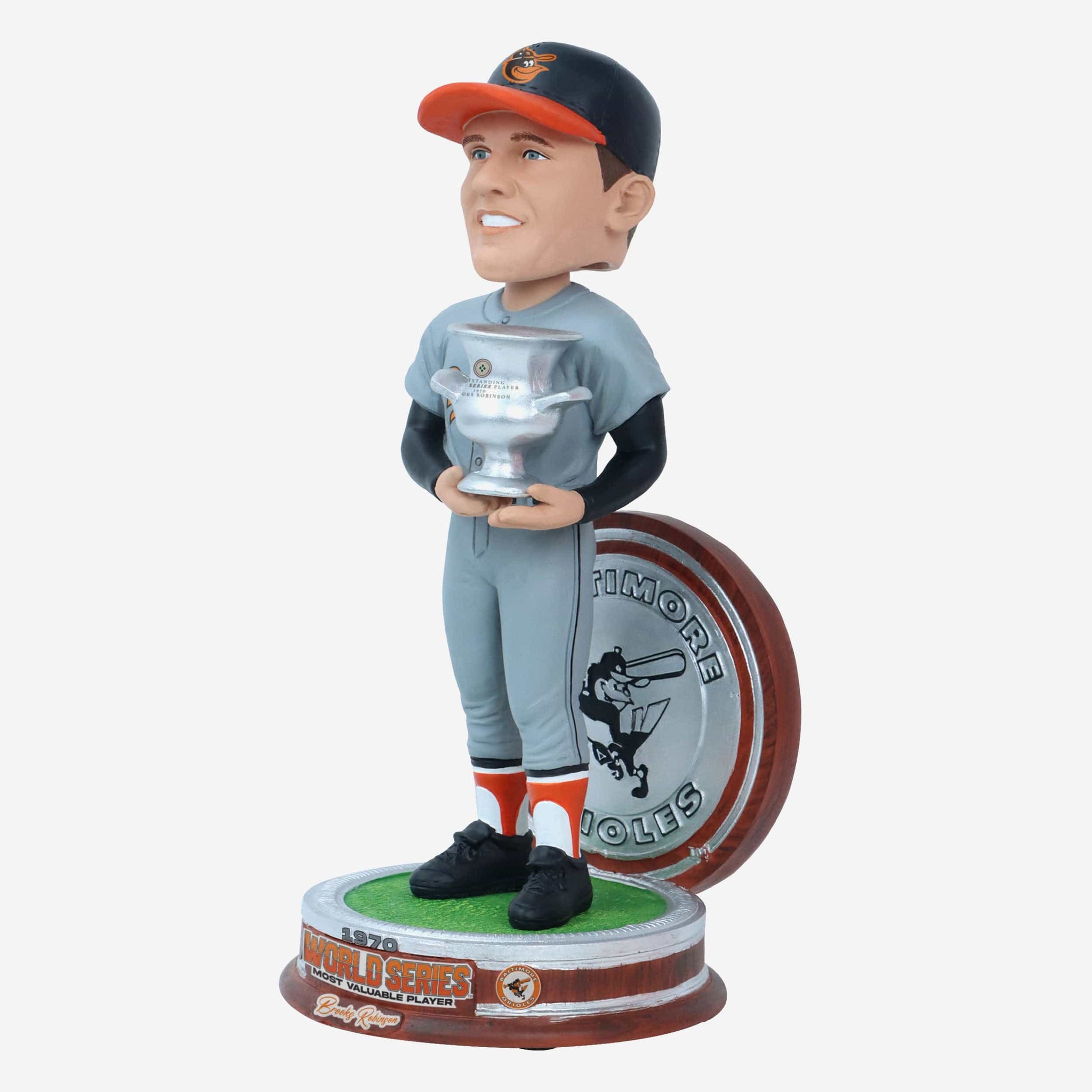 - Portrays Robinson posing in his white gameday uniform and holding his 1970 World Series MVP Award, ready to be the most valuable bobble in your collection
