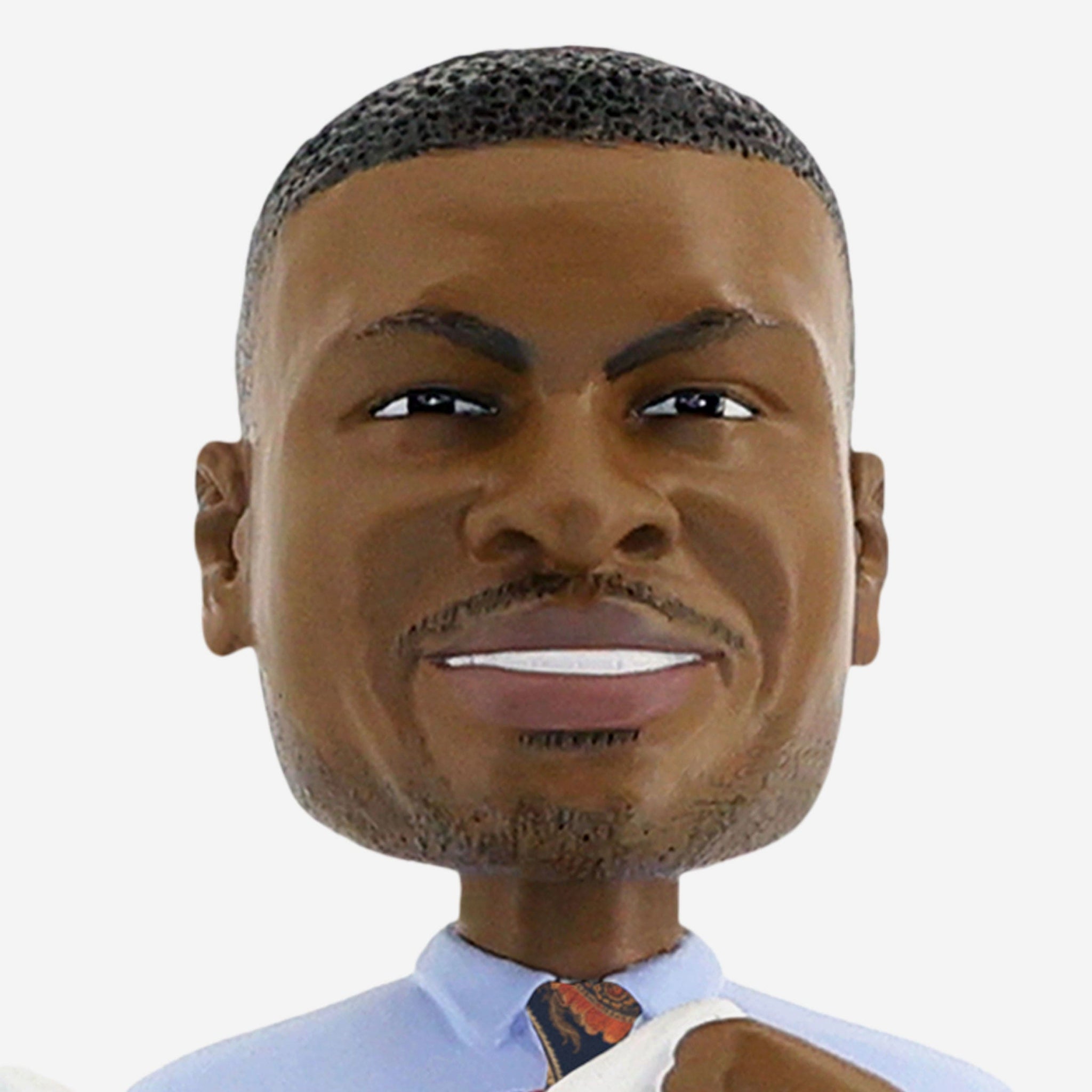 - Portrays Smith wearing his draft day outfit while holding his new team jersey, ready to be welcomed to the gridiron
