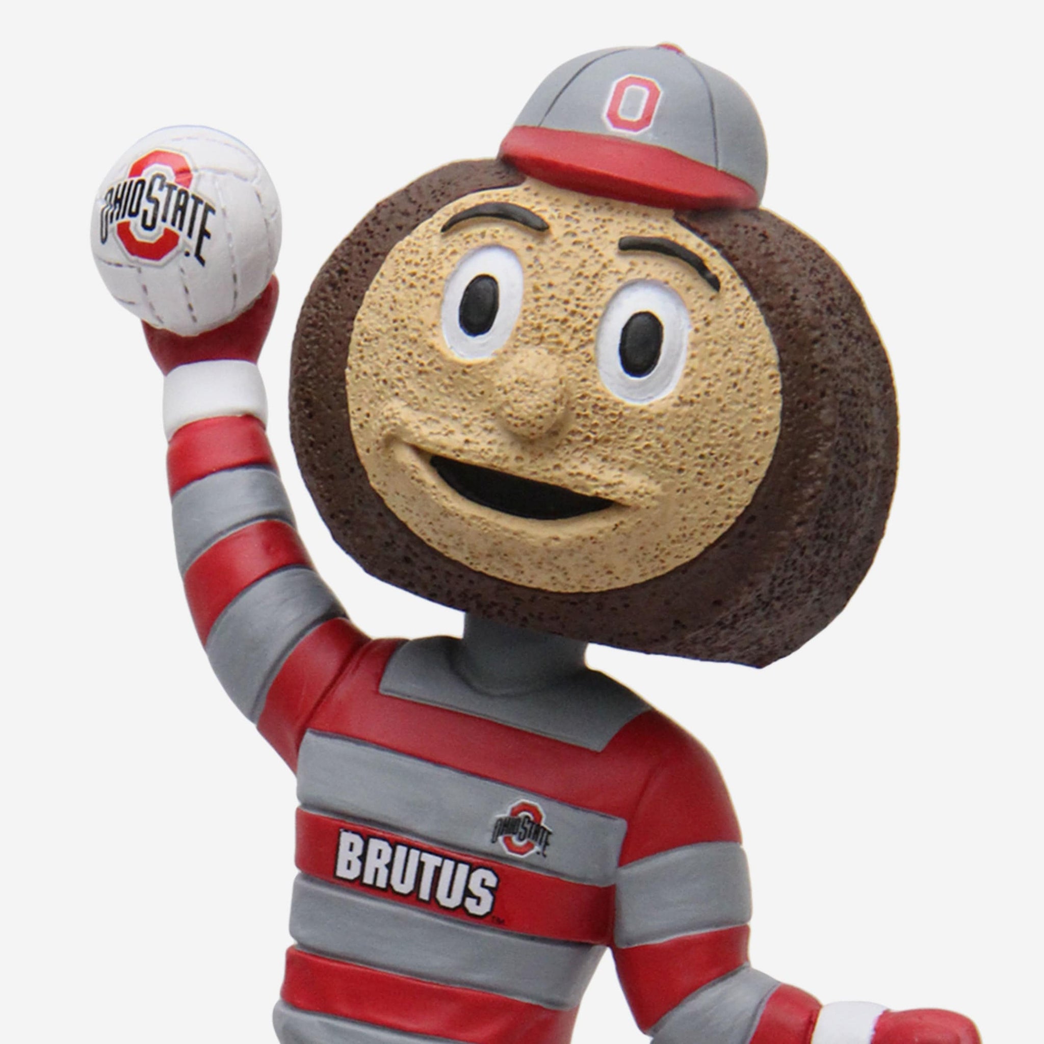 Bump. Set. Spike. Take it to the court with this Brutus Buckeye Ohio State Buckeyes Volleyball Mascot Bobblehead.