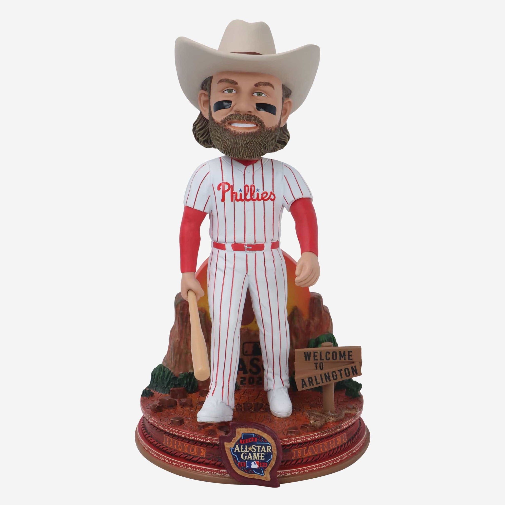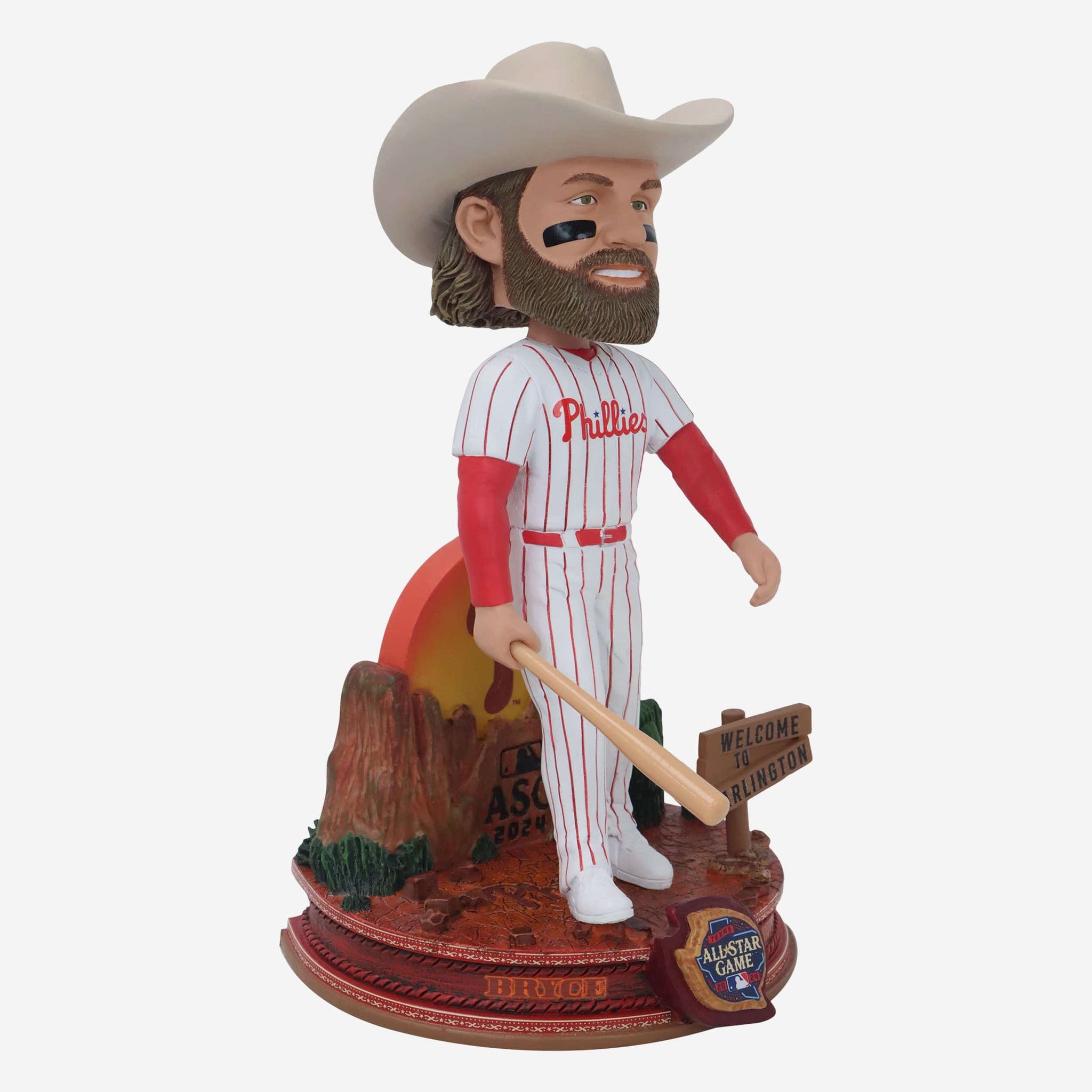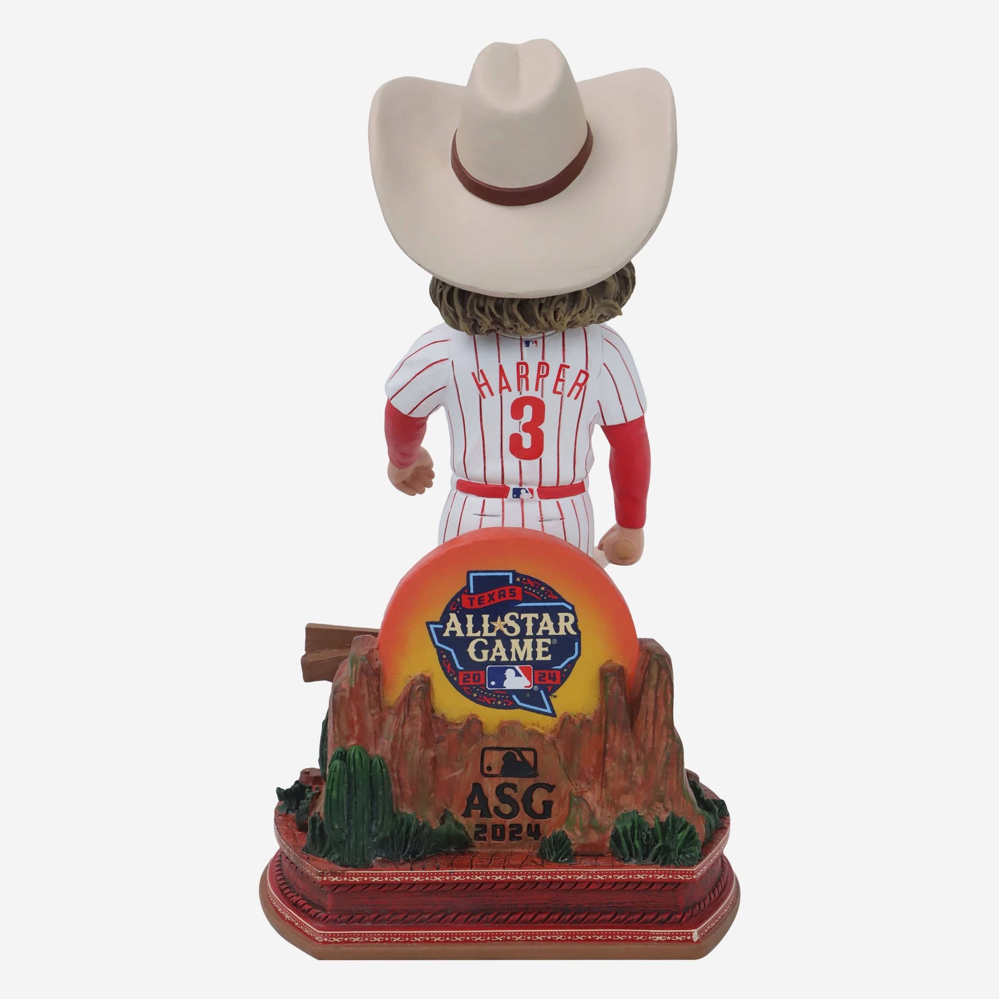 Baseball players are the real cowboys. Take centerstage deep in the heart of Texas with the Bryce Harper Philadelphia Phillies 2024 All-Star Cowboy Bobblehead.