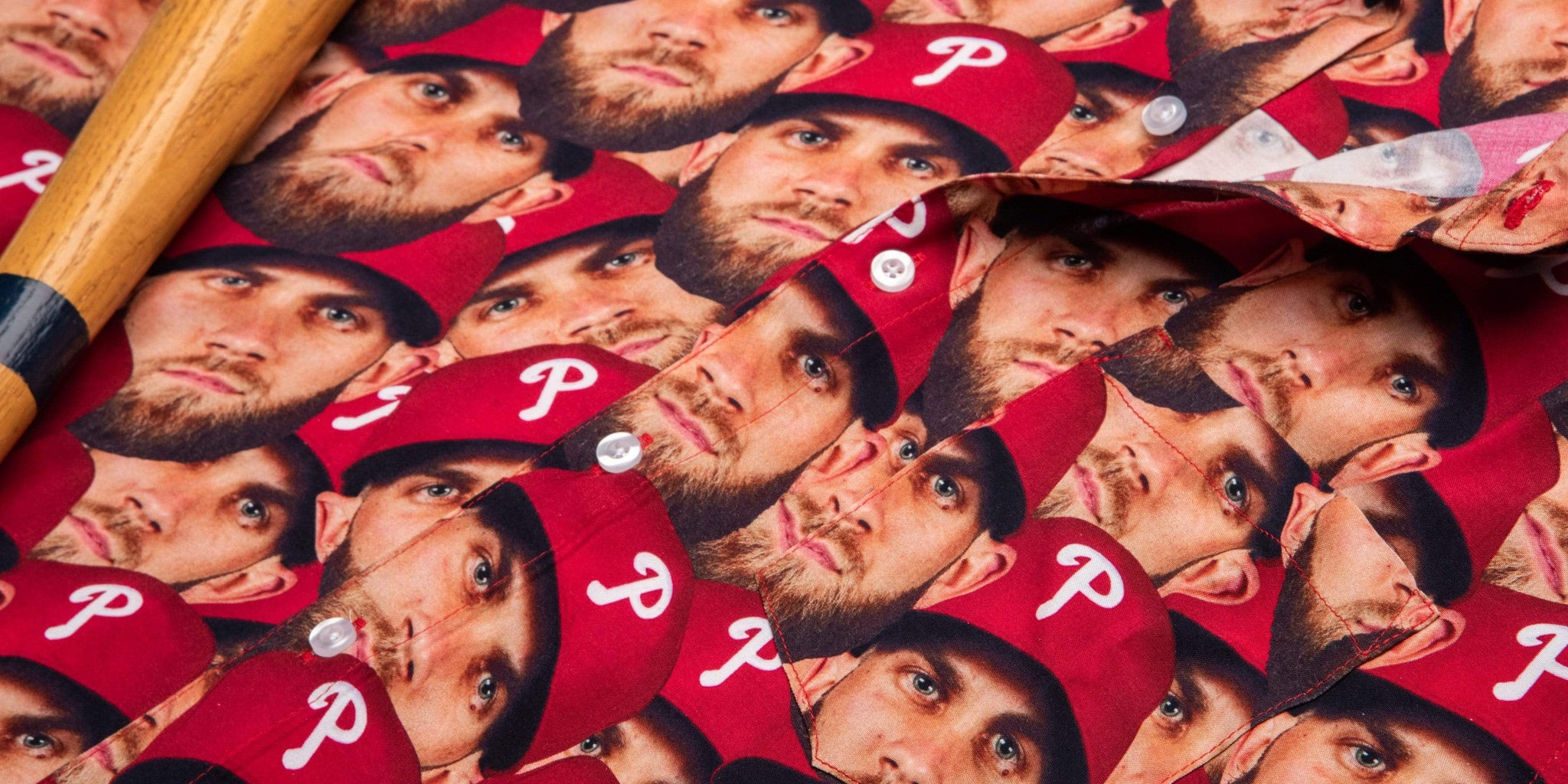 Now this is what a face of the franchise looks like. Well, a whole bunch of faces, if we're being literal. With this Bryce Harper Philadelphia Phillies Men's Button Up Shirt, you can rep your favorite player as you cheer him on to sweet, sweet victory.