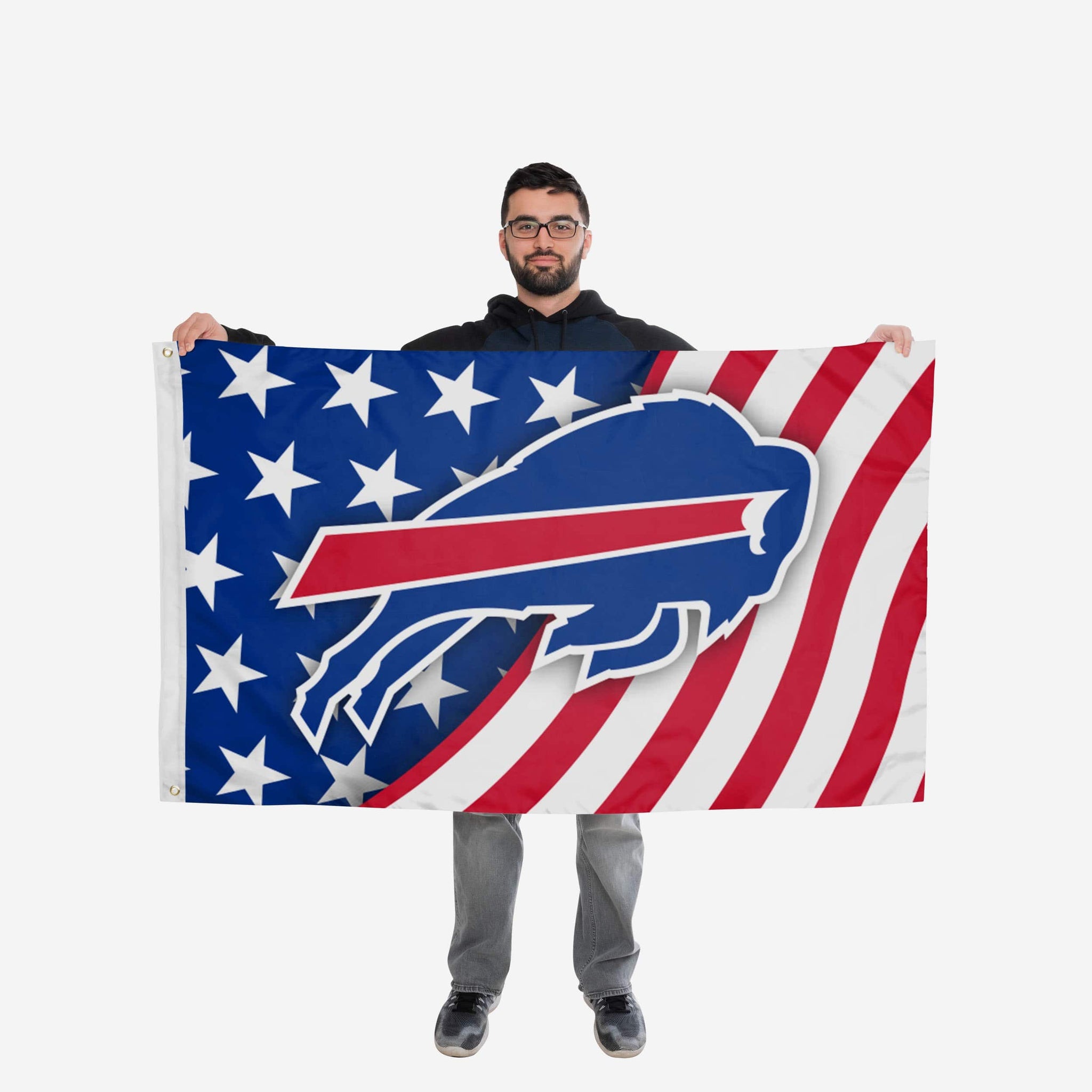 Stars, stripes, and team spirit! This Buffalo Bills Americana Horizontal Flag is just what you need to make sure everyone is pledging allegiance to your fandom!