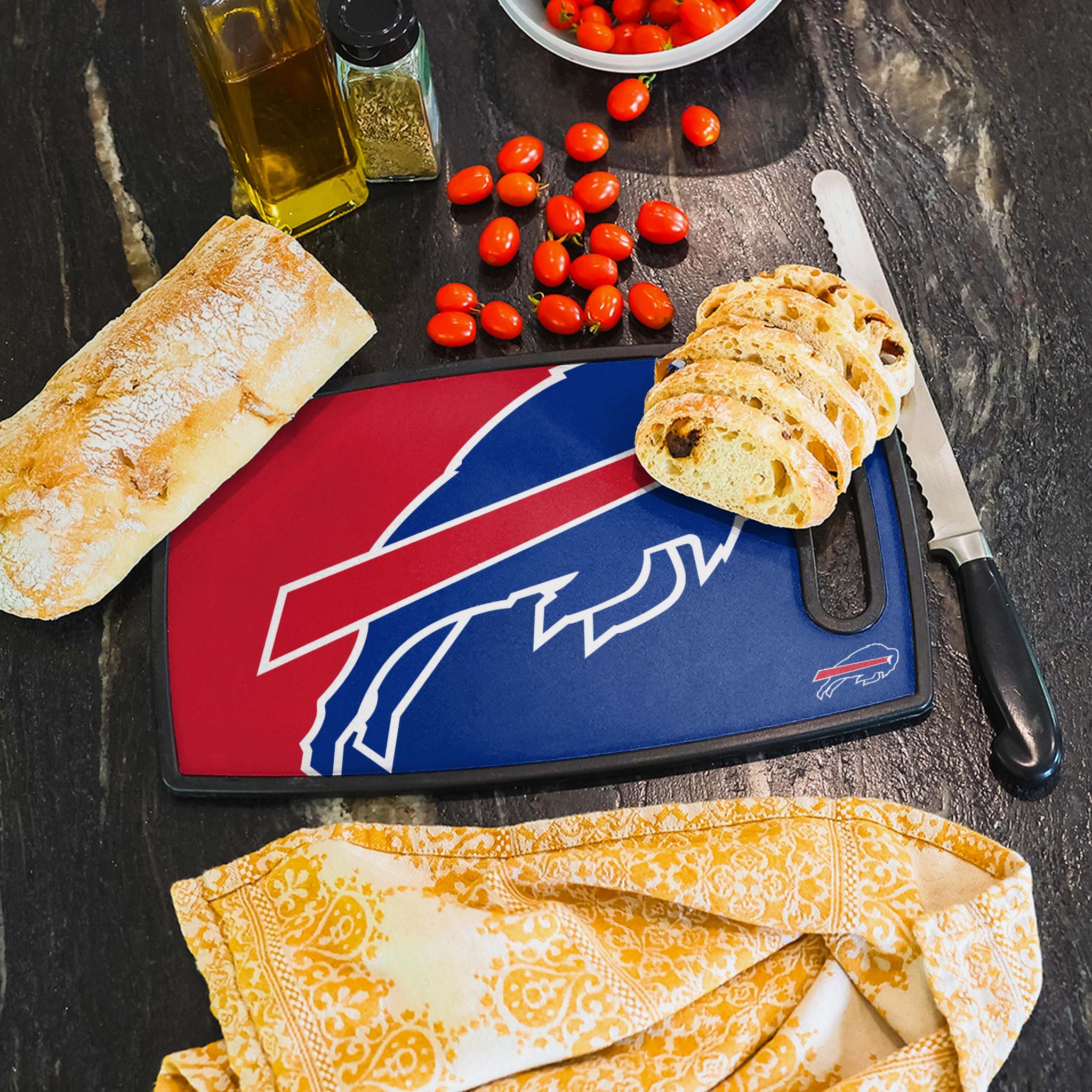 Rep the team while you prep the meal. With this Buffalo Bills Big Logo Cutting Board as your sous chef in the kitchen, your gameday is about to go gourmet.