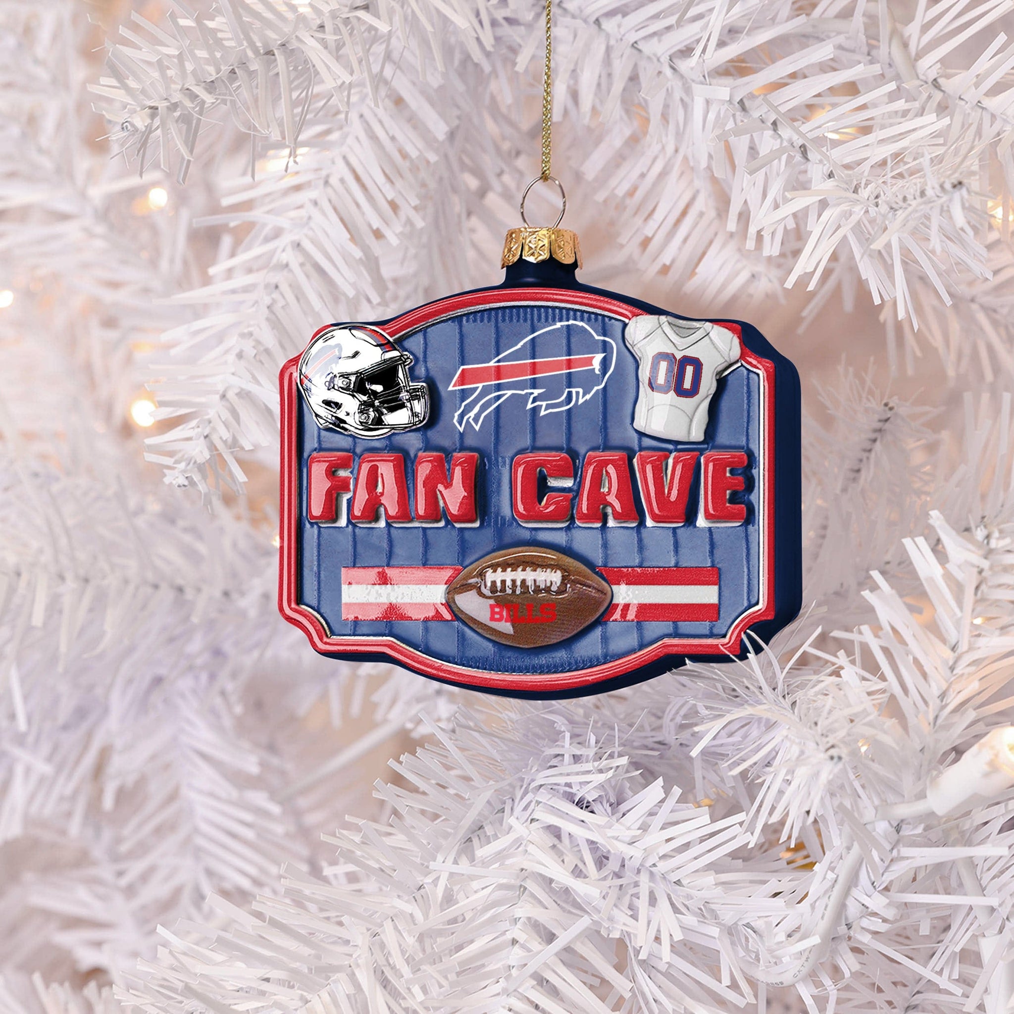 Celebrate the most wonderful time of the year with the ultimate fan flair! From kickoff to Christmas morning, this Buffalo Bills Blown Glass Fan Cave Ornament Blown Glass Fan Cave Ornament scores big with team logos, helmets, and jersey details in a premium blown glass finish.
