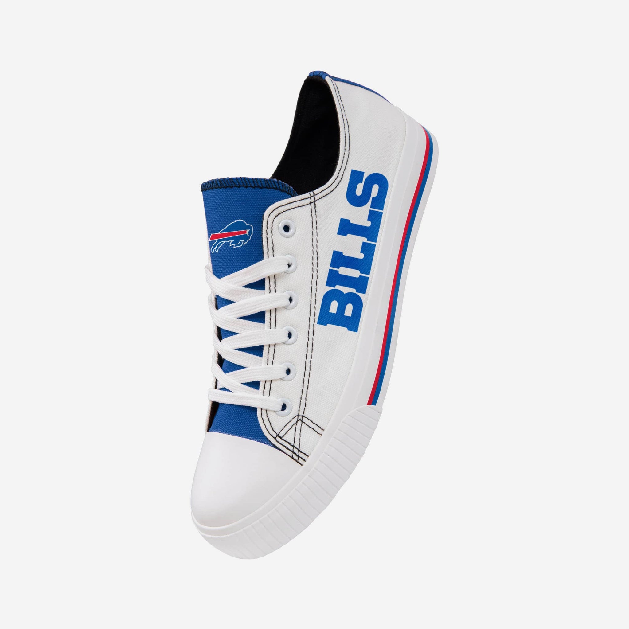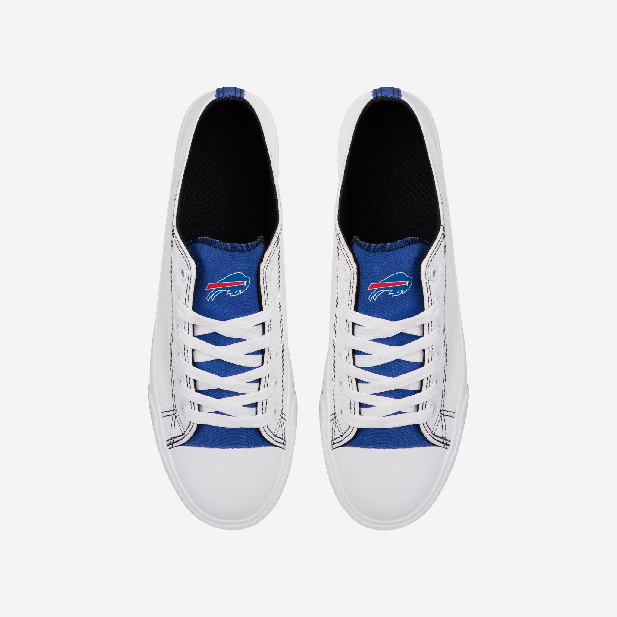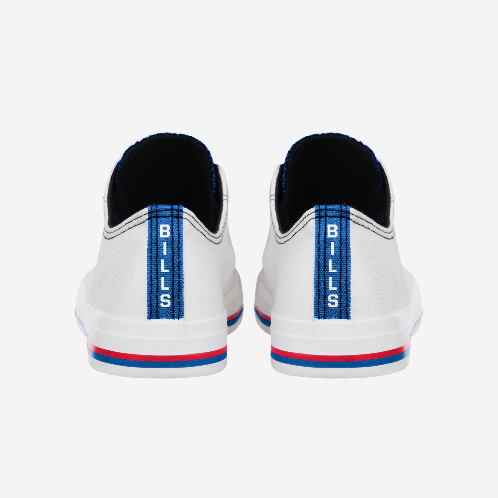 Low top shoes. High level fandom. Take countless steps in the right direction with these Buffalo Bills Men's Low Top White Canvas Shoes.