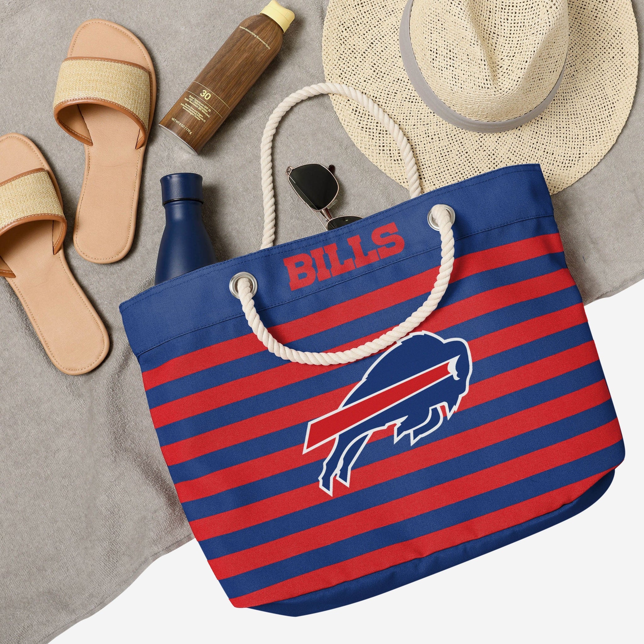 You're a real fan. You've earned your stripes. Now you can show them off AND carry the team with this Buffalo Bills Nautical Stripe Tote.