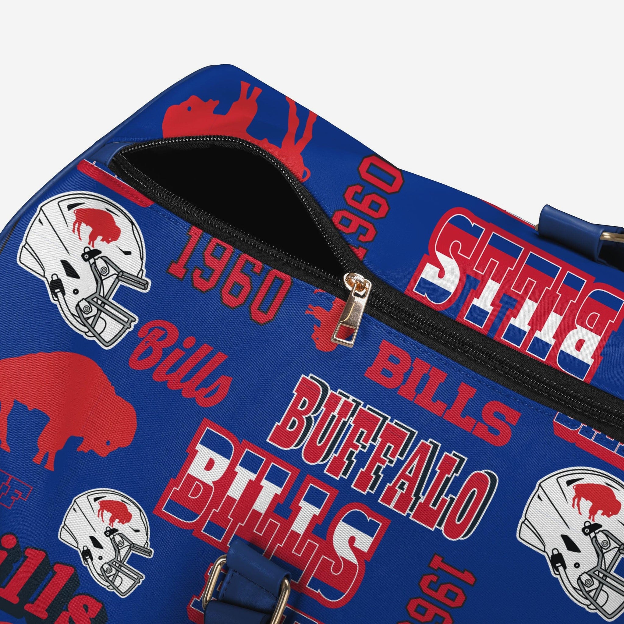 • Repeat retro Buffalo Bills wordmarks, logos, and graphics printed all over the bag so your team pride is always on display