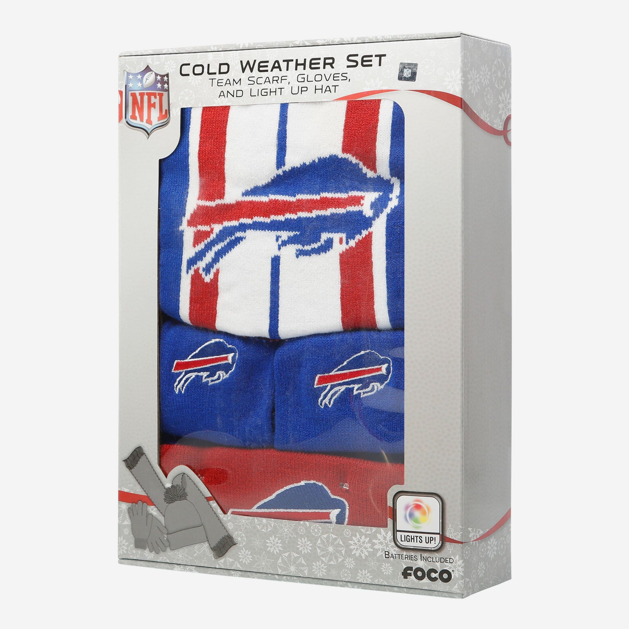 Scarf? Check. Gloves? Check. Light up beanie? You guessed it - Check. Show the snow who's boss with this Buffalo Bills Snow Stealer Cold Weather Set!