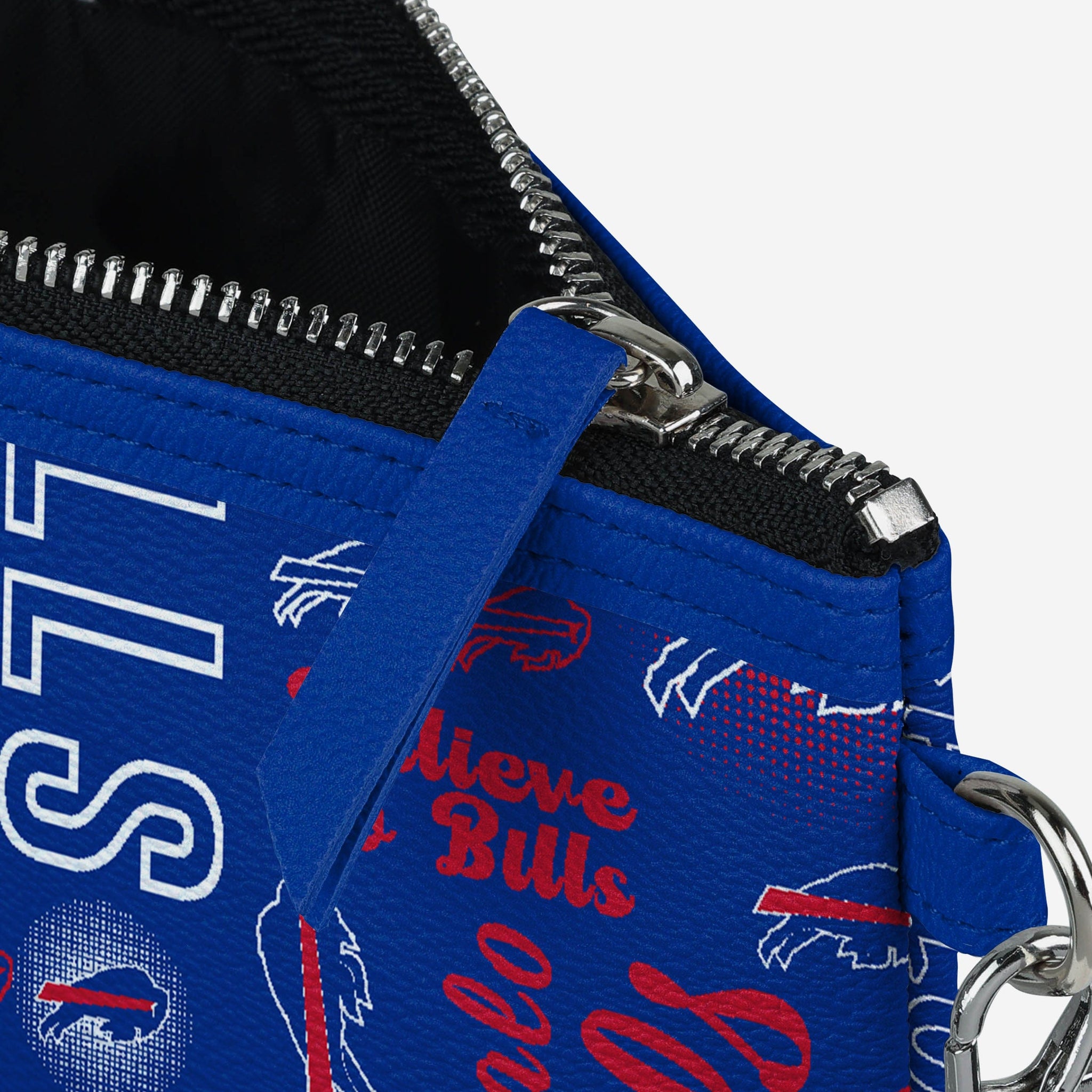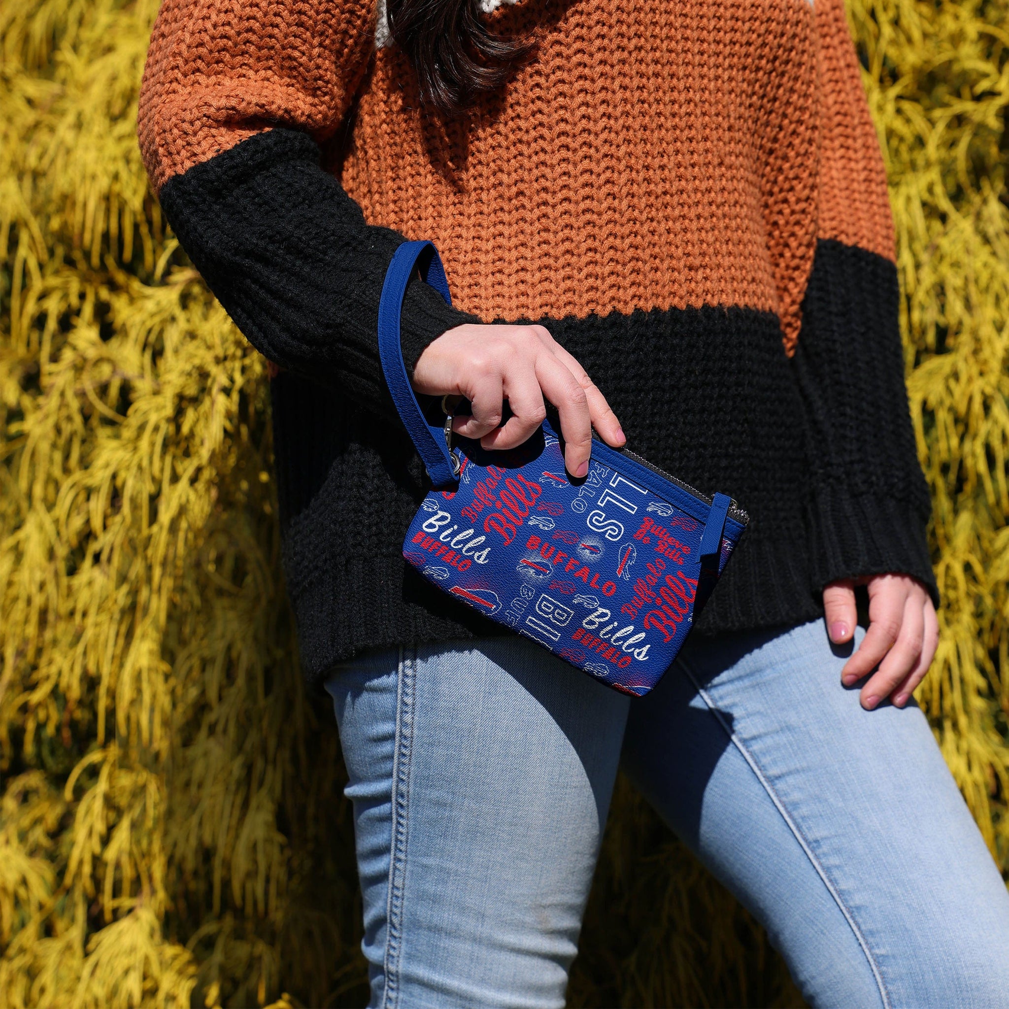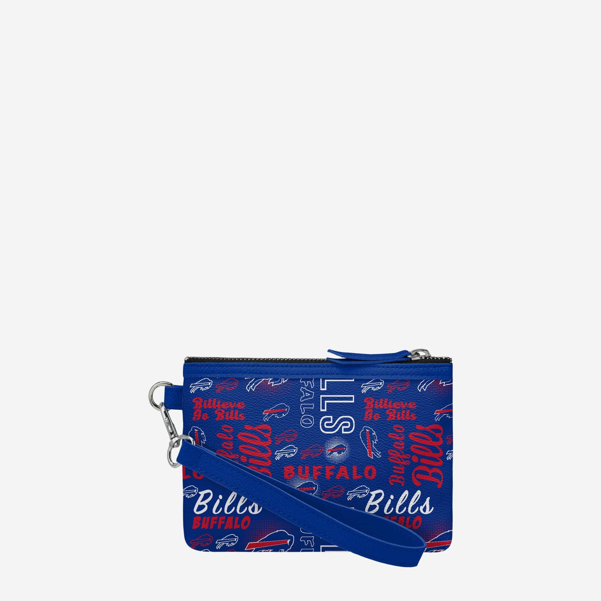 Gamedays on the go are easier and more fashionable than ever before thanks to this Buffalo Bills Spirited Style Printed Collection Repeat Logo Wristlet.