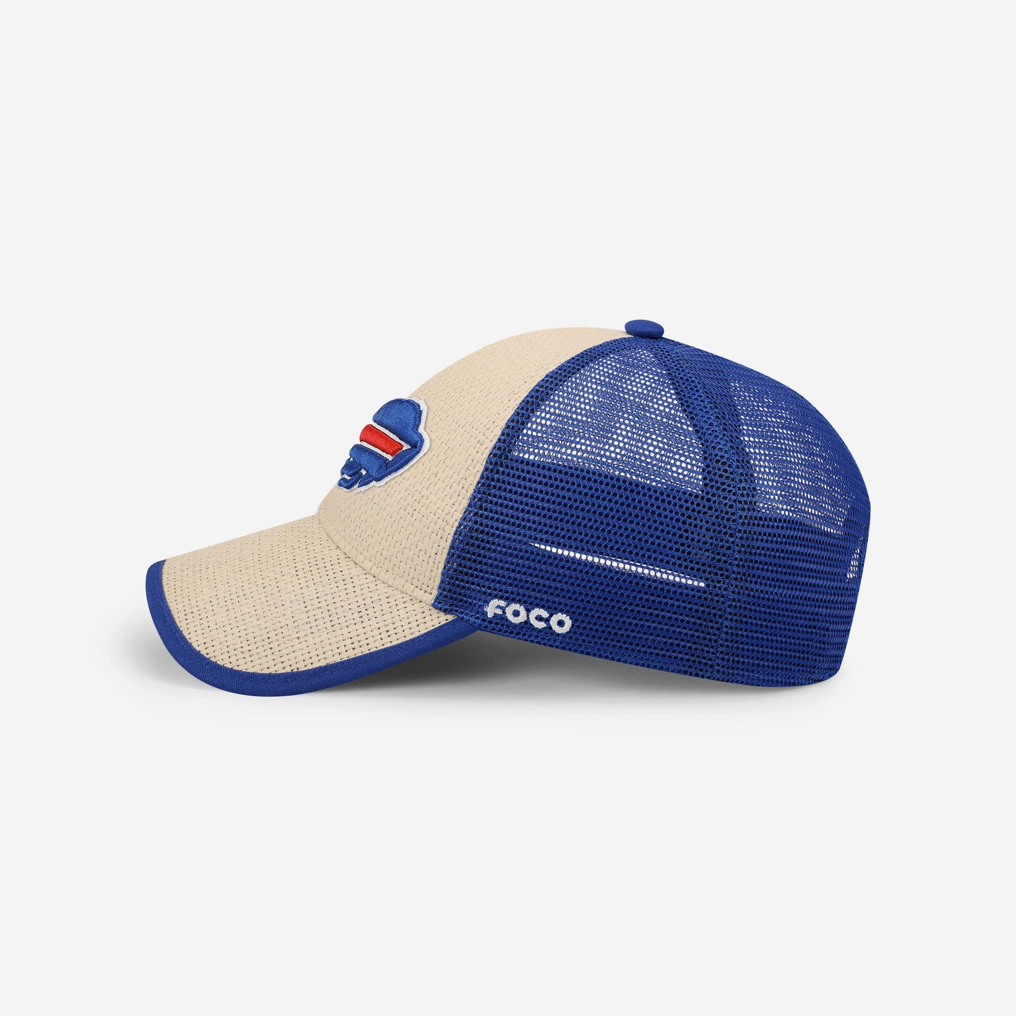 Whether you're behind the wheel of a big rig or in the stands at the game, this Buffalo Bills Straw Trucker Cap is just the thing for your outfit. Featuring an embroidered team logo display, a wordmark display, and an unstructured design with a curved visor and high crown, you’ll be all set to play the role of trucker and fan. Plus, the mesh panels and adjustable snapback snap closure makes this hat perfect for any adventure.