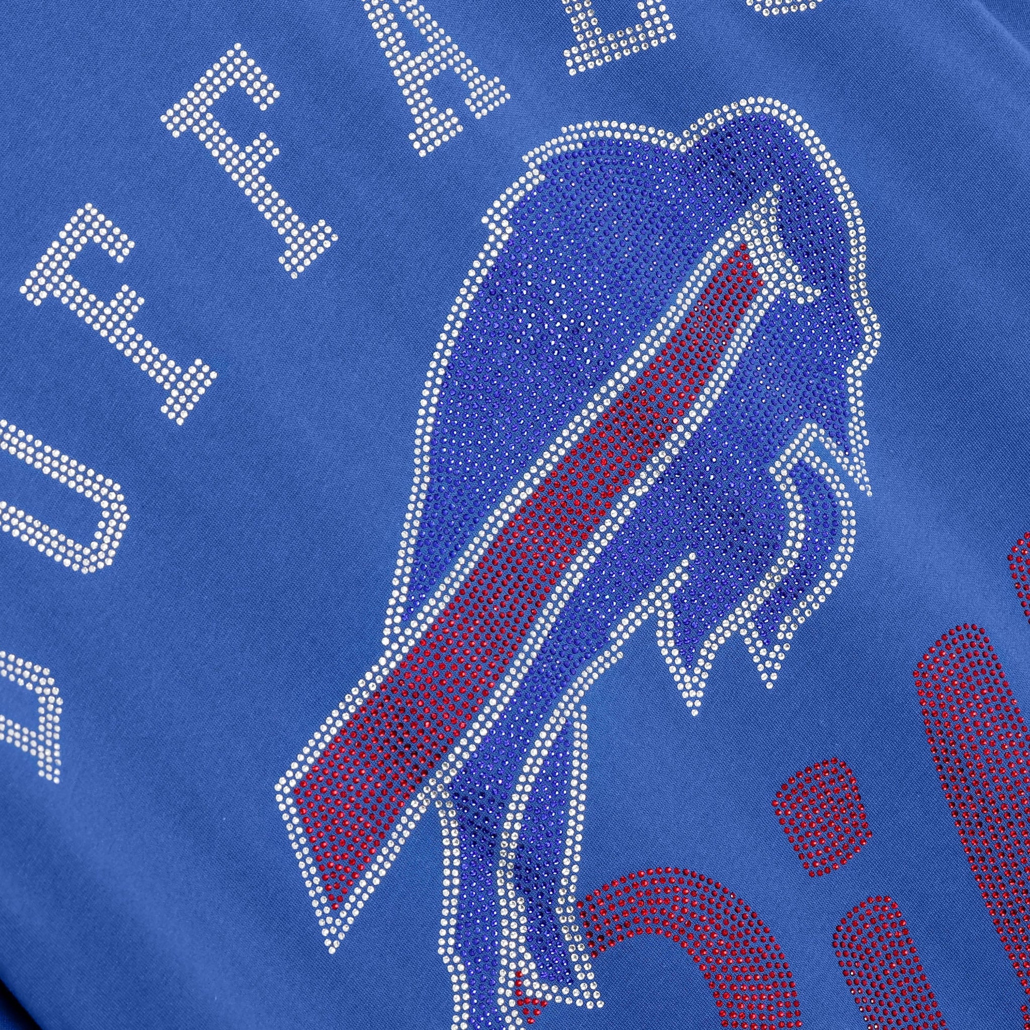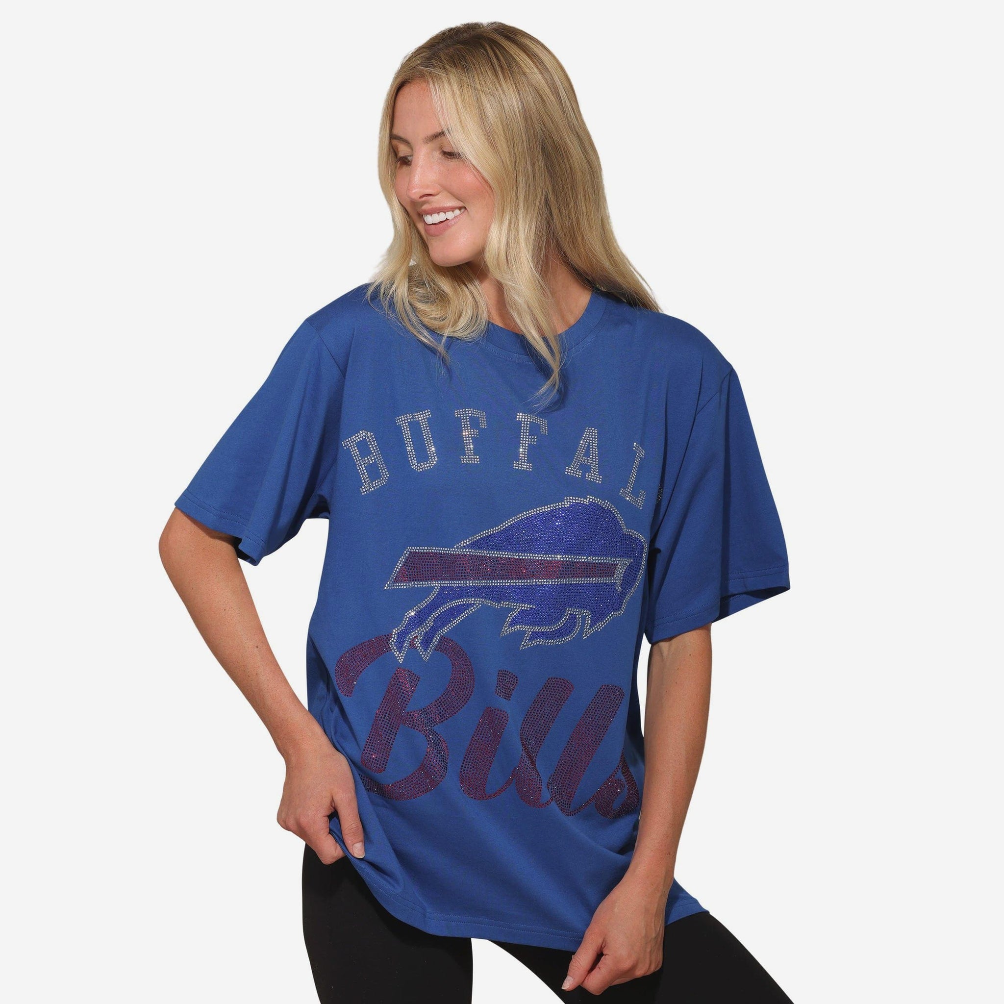 Bring on the bling and let your fandom shine! The Buffalo Bills Womens Rhinestone Logo Oversized T-Shirt is all about big sparkle and even bigger team spirit. It’s bold, it’s bright, and it’s ready to rep your squad from game day to every day.