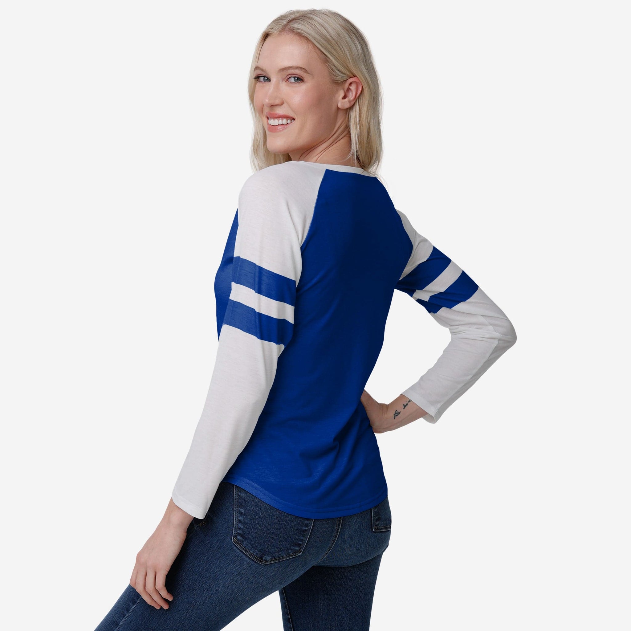 Buffalo Bills Womens Script Wordmark Striped Sleeve Raglan T-Shirt FOCO S - FOCO.com