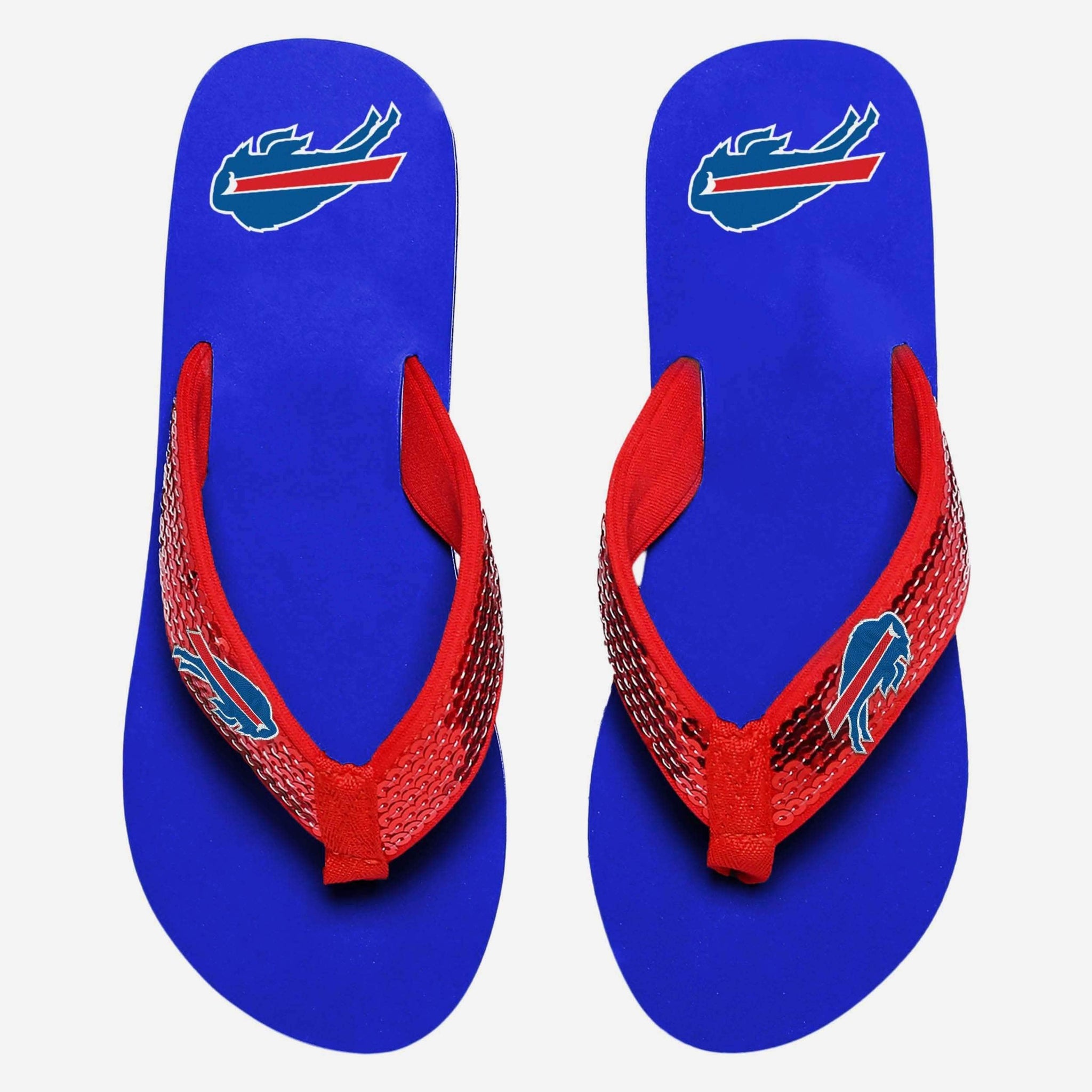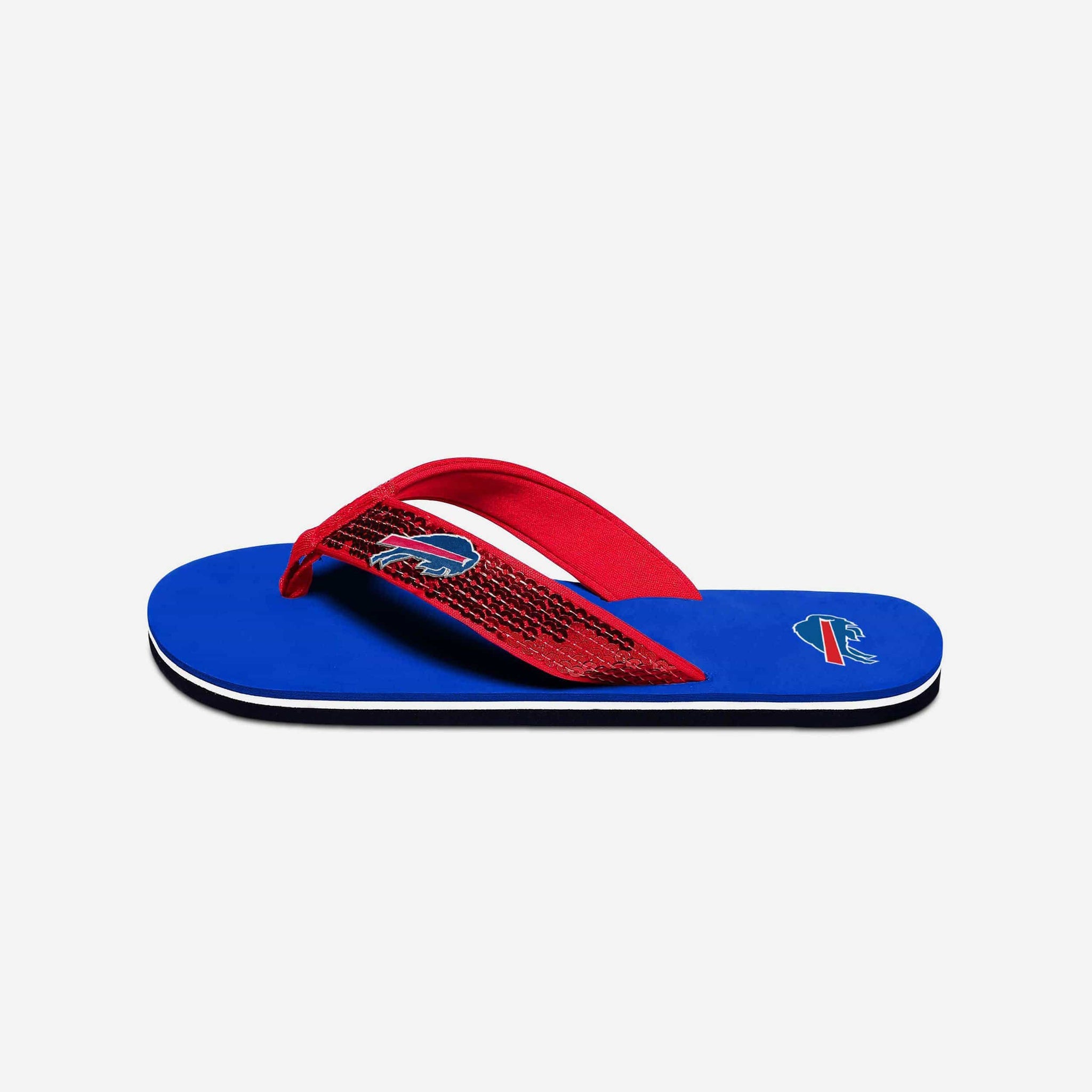 Nothing comes close to shining as bright as your team spirit. Well, nothing other than these Buffalo Bills Sequin Flip Flops. Rock your fandom in comfort and style. Just don't be surprised when people need sunglasses when they look at you.