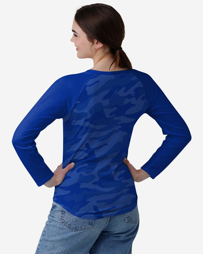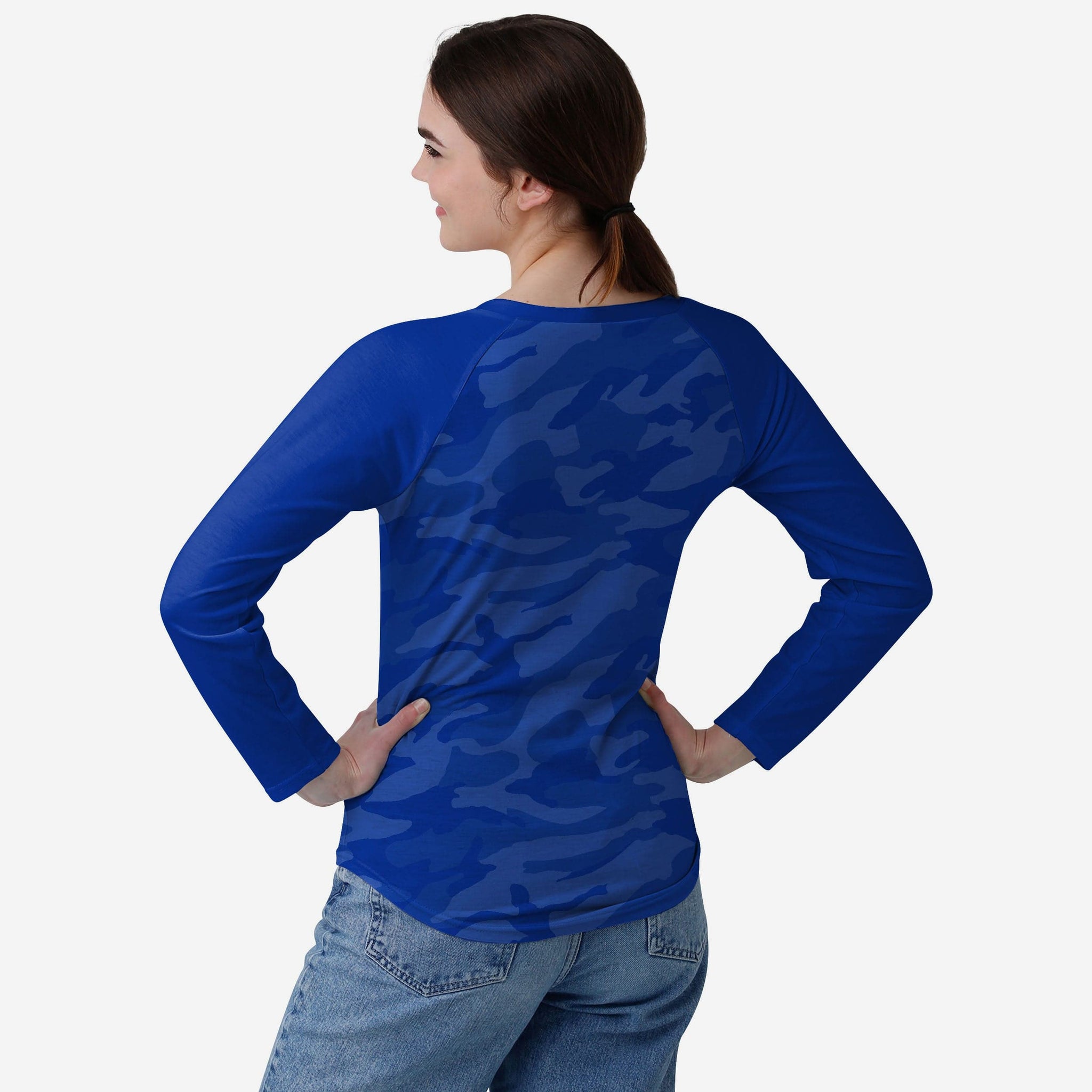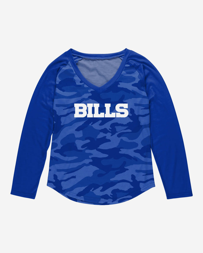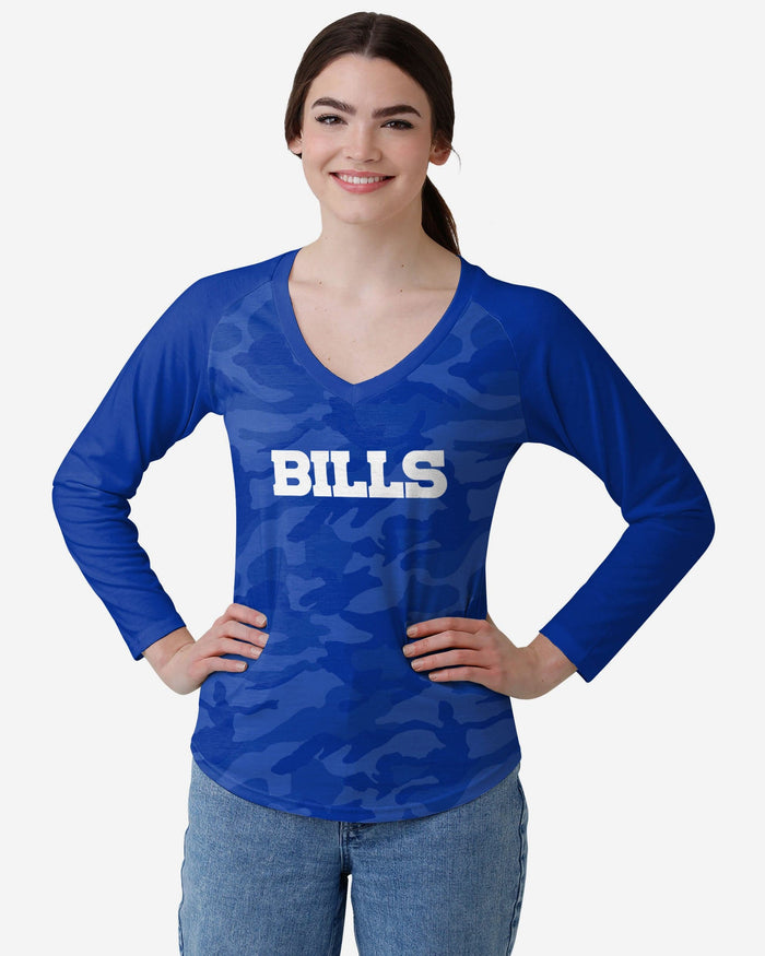 Despite its sleek camouflage design, when you're rocking this Buffalo Bills Women's Wordmark Tonal Camo Raglan T-Shirt, you won't blend in with the crowd - You'll stand out.