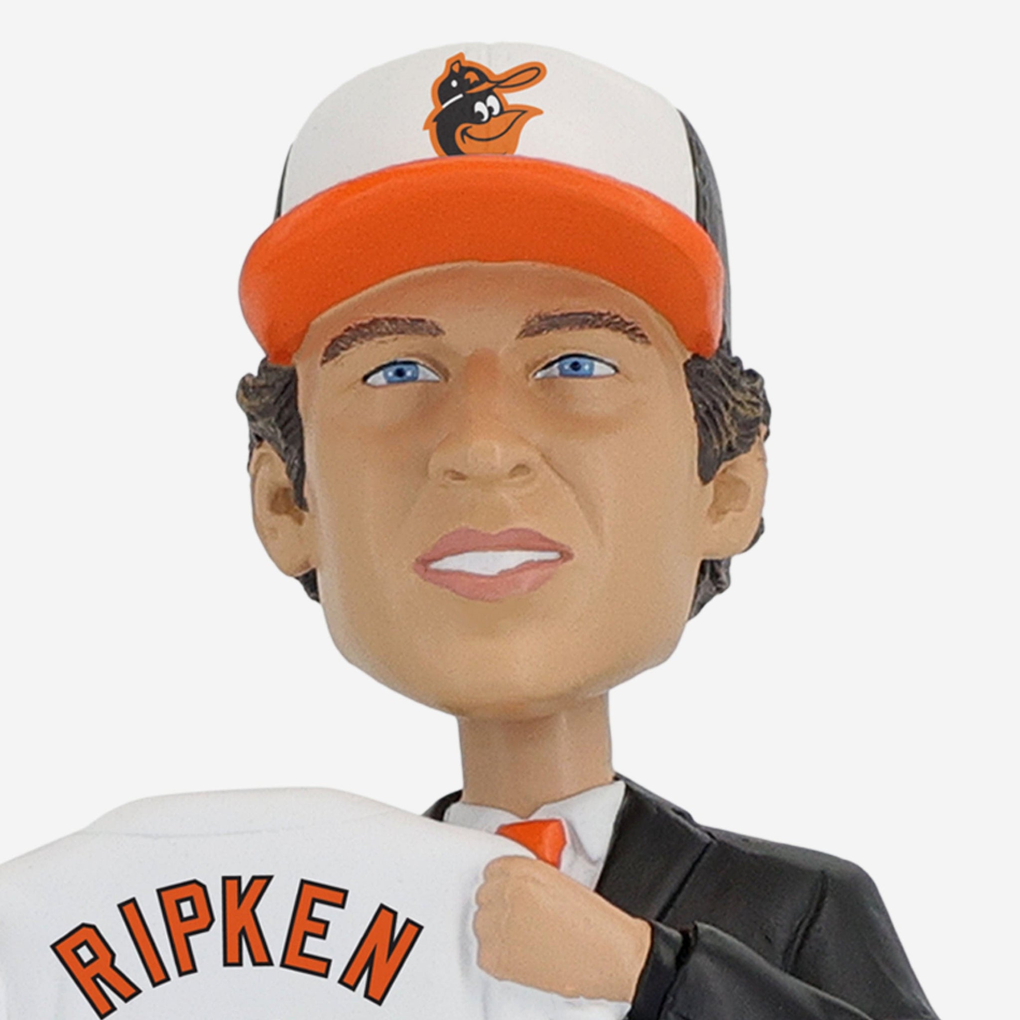 - Portrays Ripken Jr. wearing his draft day outfit and team cap while holding his new team jersey, ready to be welcomed to the show