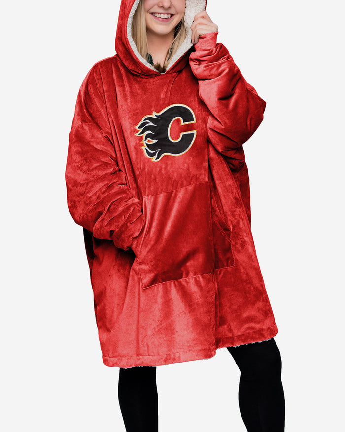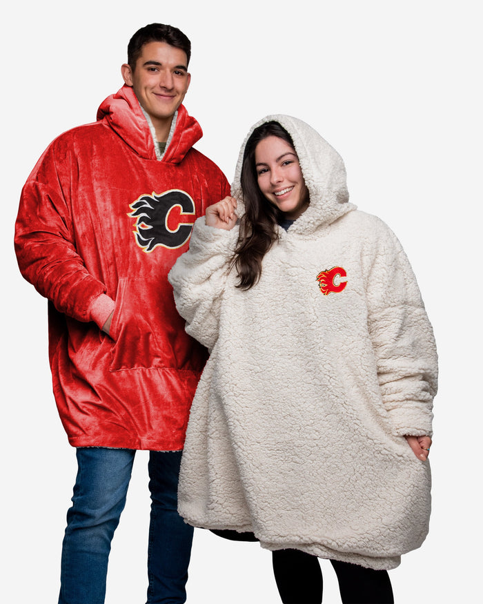 Choosing between showing off your team spirit, looking good, and enjoying some elite relaxation is a tough decision. Borderline impossible. Good news. You don't have to choose. Because you can enjoy that triple threat of fan awesome when you rock this Calgary Flames Reversible Big Logo Hoodeez.