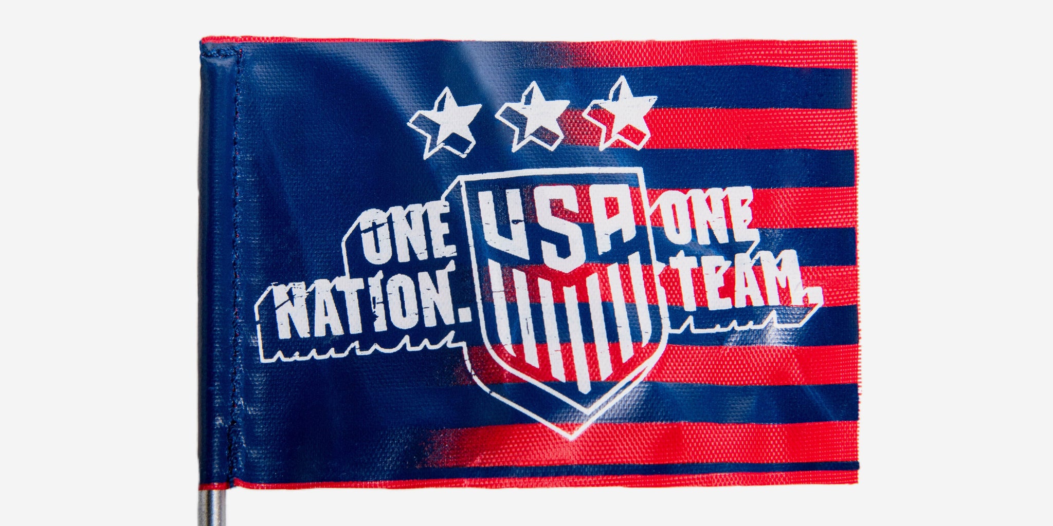 - Fabric flag backdrop with Team USA imagery so you can plant your flag as the biggest fan around