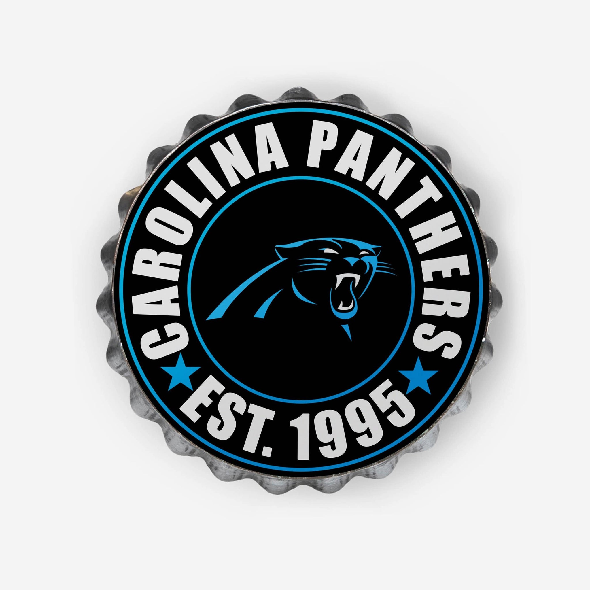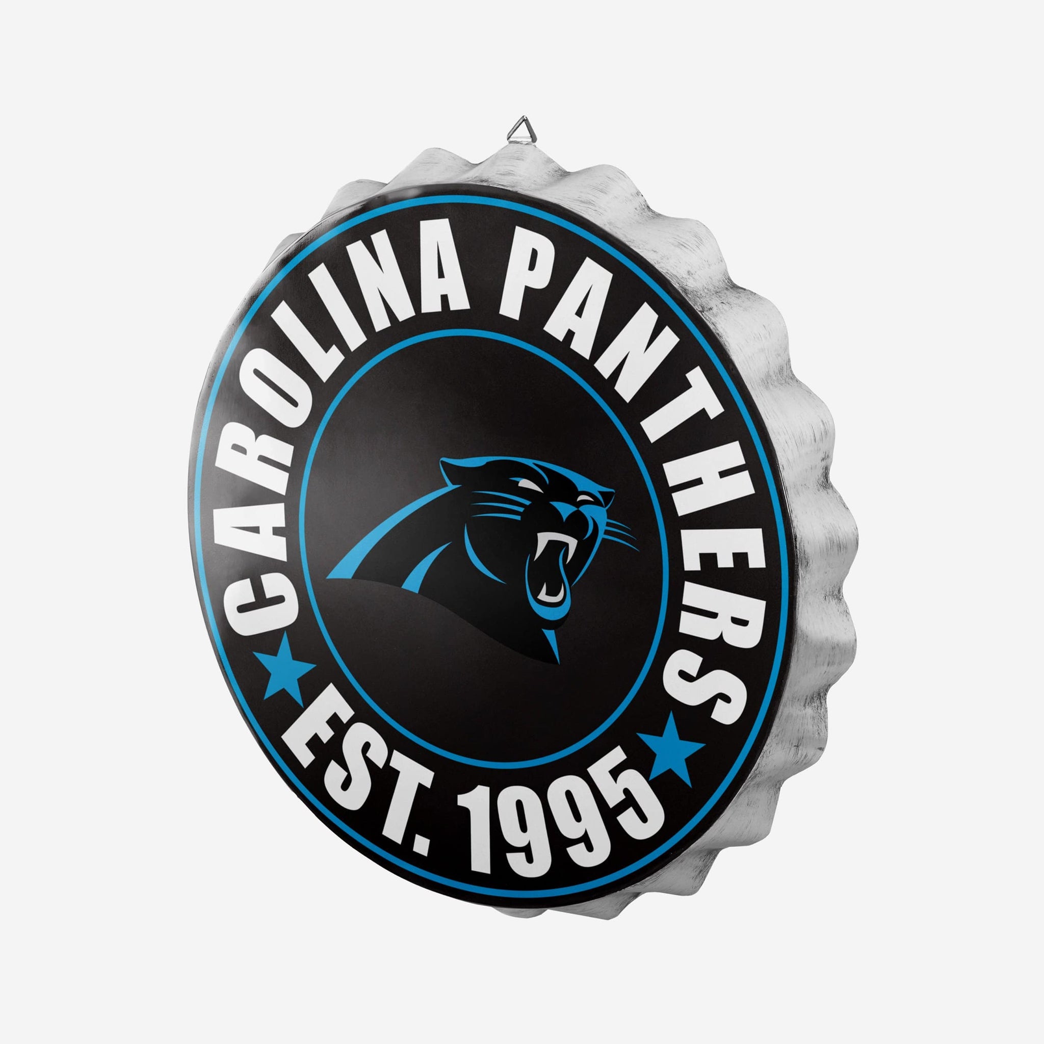 You won't have to waste time telling people who you're rooting for when you've got this Carolina Panthers Bottle Cap Wall Sign on display in your fancave, because the sign will answer it for you. Instead, use that time to crack open another cold beverage and enjoy the game.