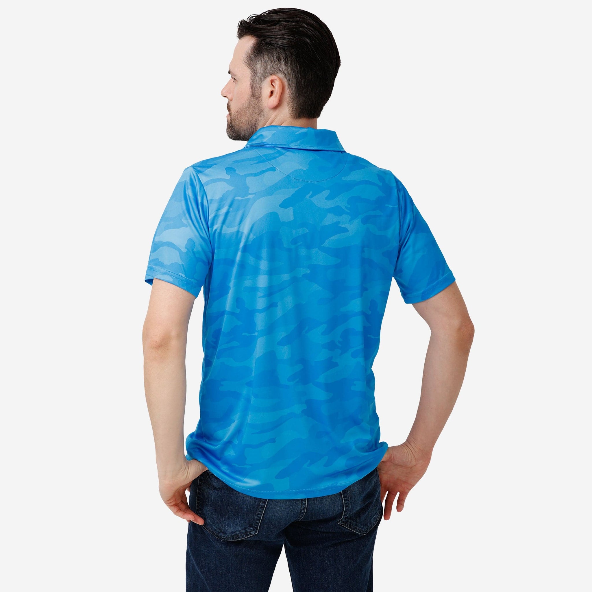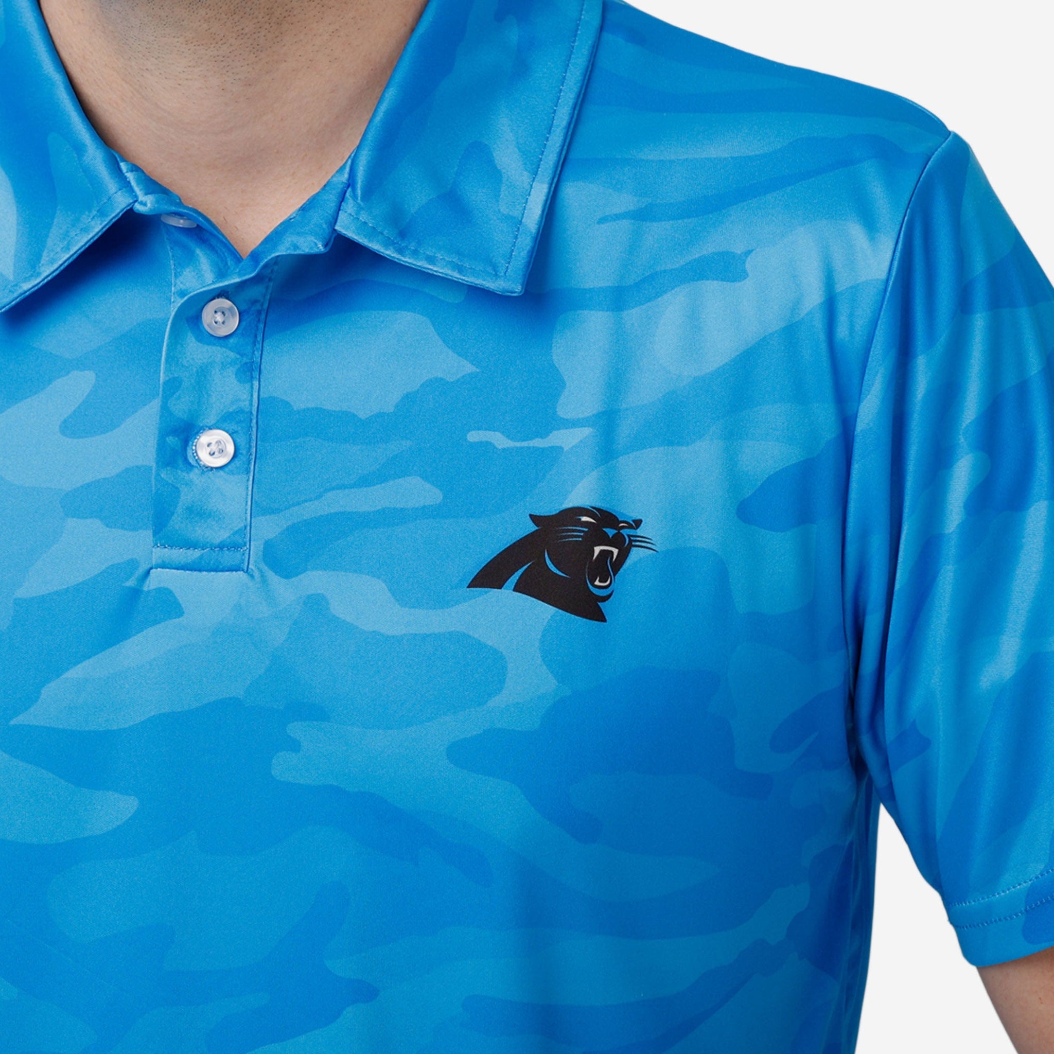 We're not talking about those phony baloney fake fans that still call it "sportsball." True fans like you simply can't hide your team pride. Not even with some camouflage. When you rock this Carolina Panthers Color Camo Polyester Polo, you'll see what we mean.
