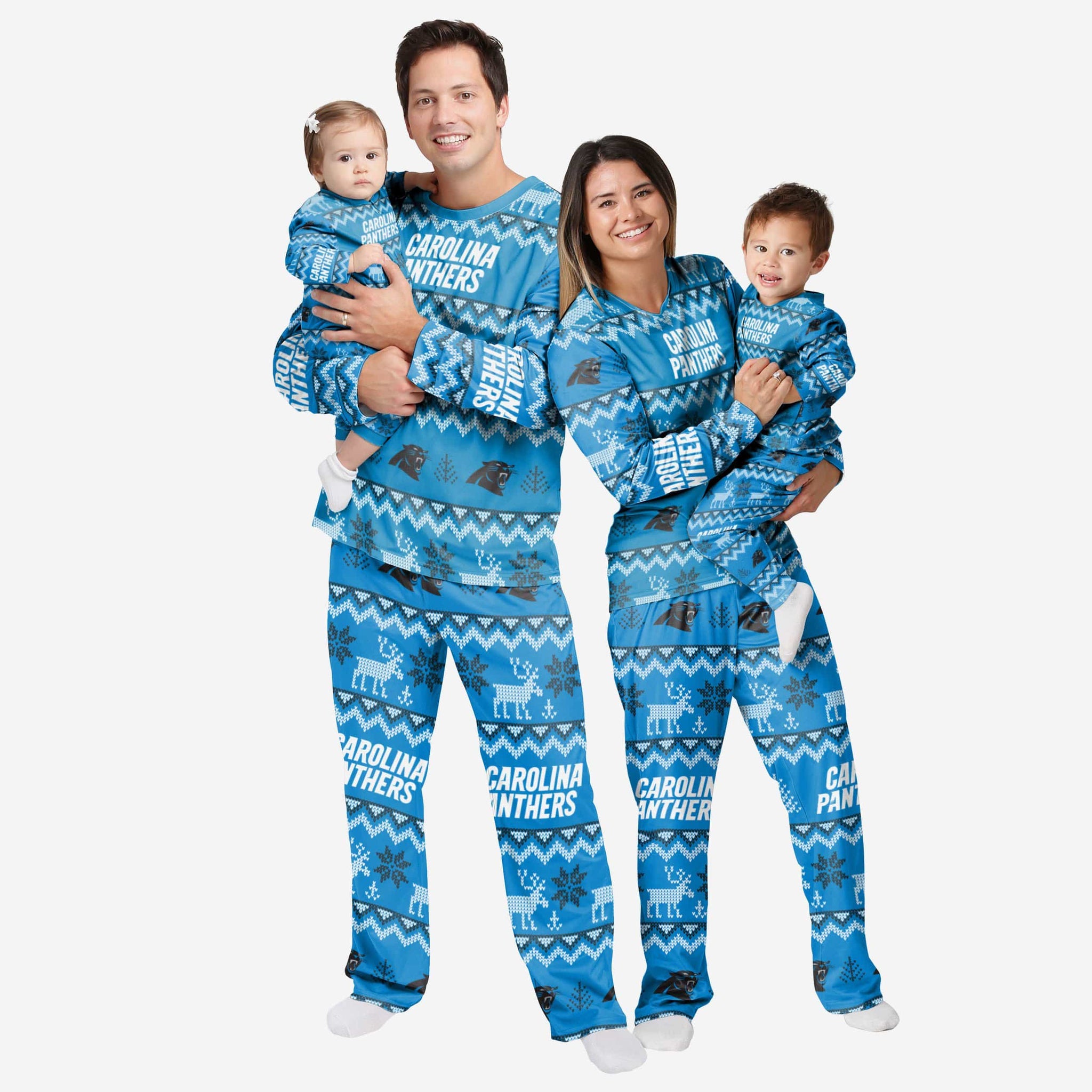 Get your young fan started early this holiday season in these Carolina Panthers Infant Ugly Pattern Family Holiday Pajamas! Your baby will absolutely love these matching Christmas pajamas! Make sure your infant enjoys sweet dreams filled with holiday joy by having them sleep in infant pajamas. Don’t forget to take your holiday photo with the whole family wearing matching Christmas pajamas!
