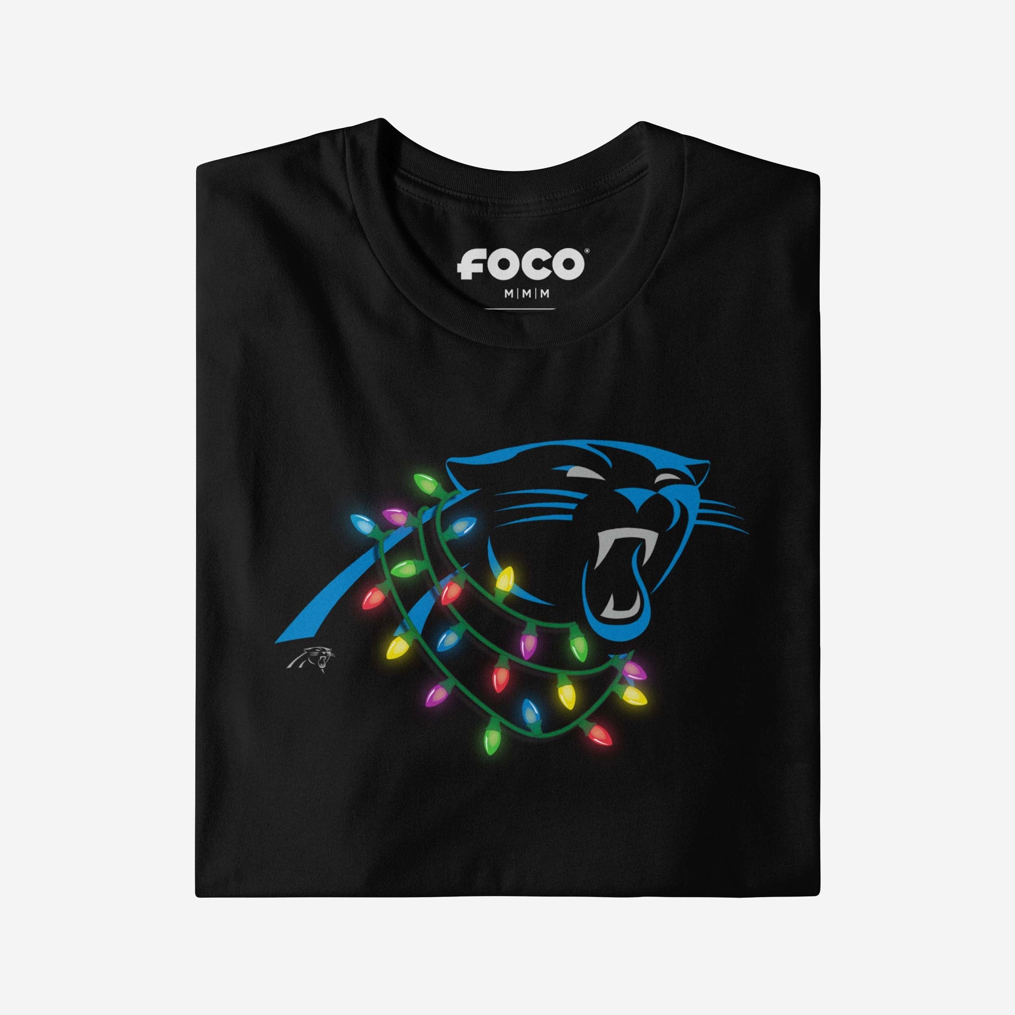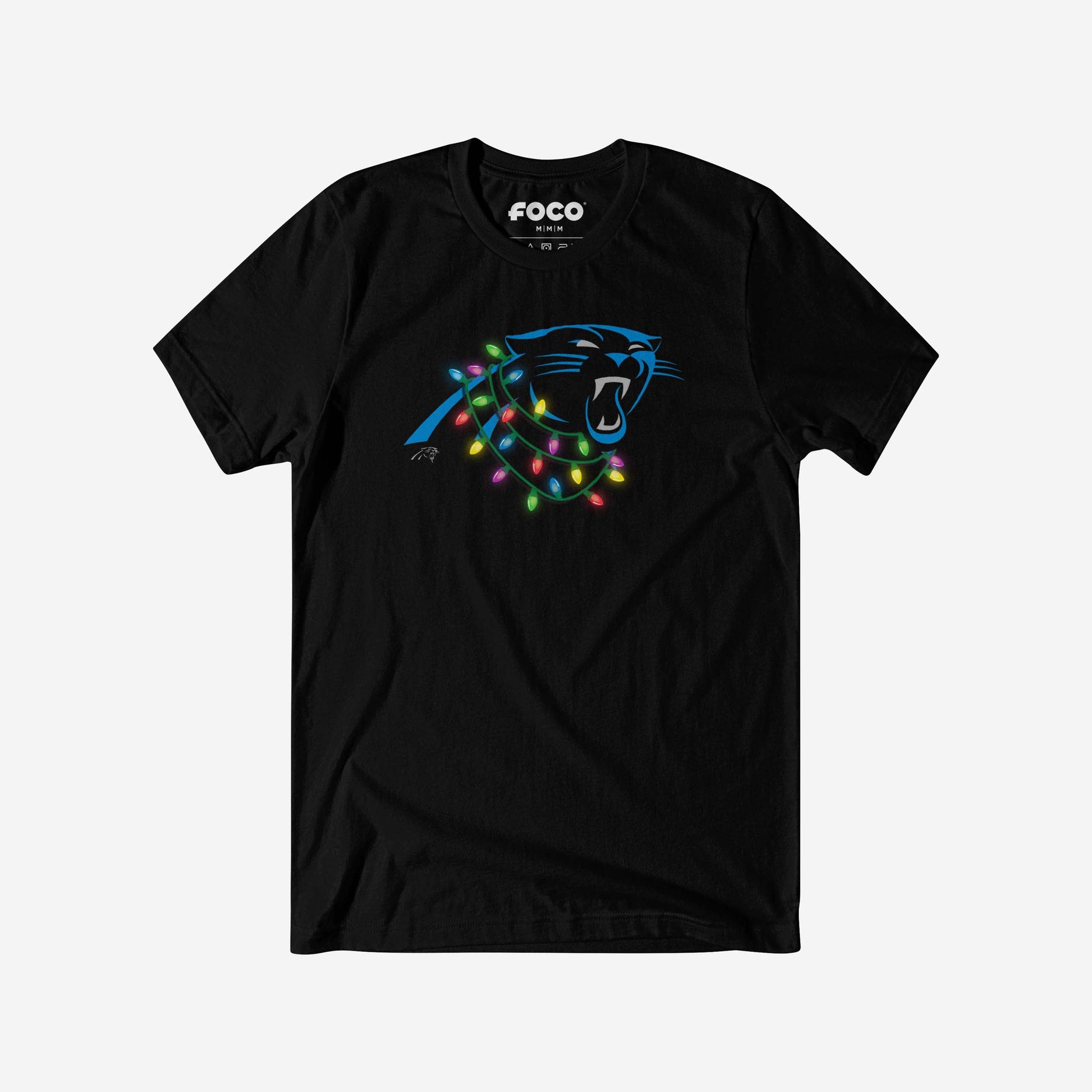 Carolina Panthers Primary Logo Holiday Lights T-Shirt FOCO S - FOCO.com