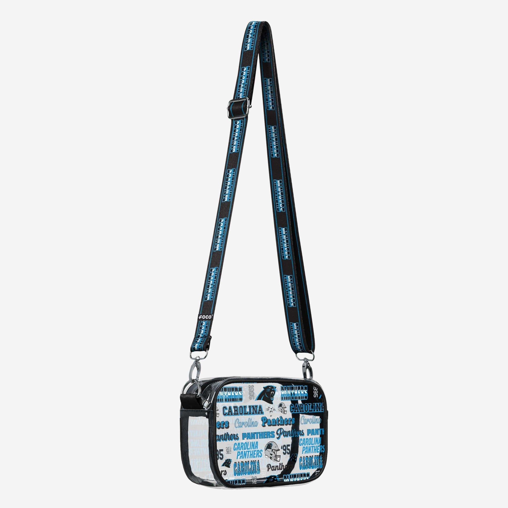 Over your shoulder and off to the game. Whether you're running errands on the town or running the tailgate in the parking lot, this Carolina Panthers Repeat Retro Print Clear Crossbody Bag is the perfect way to carry the team like never before.