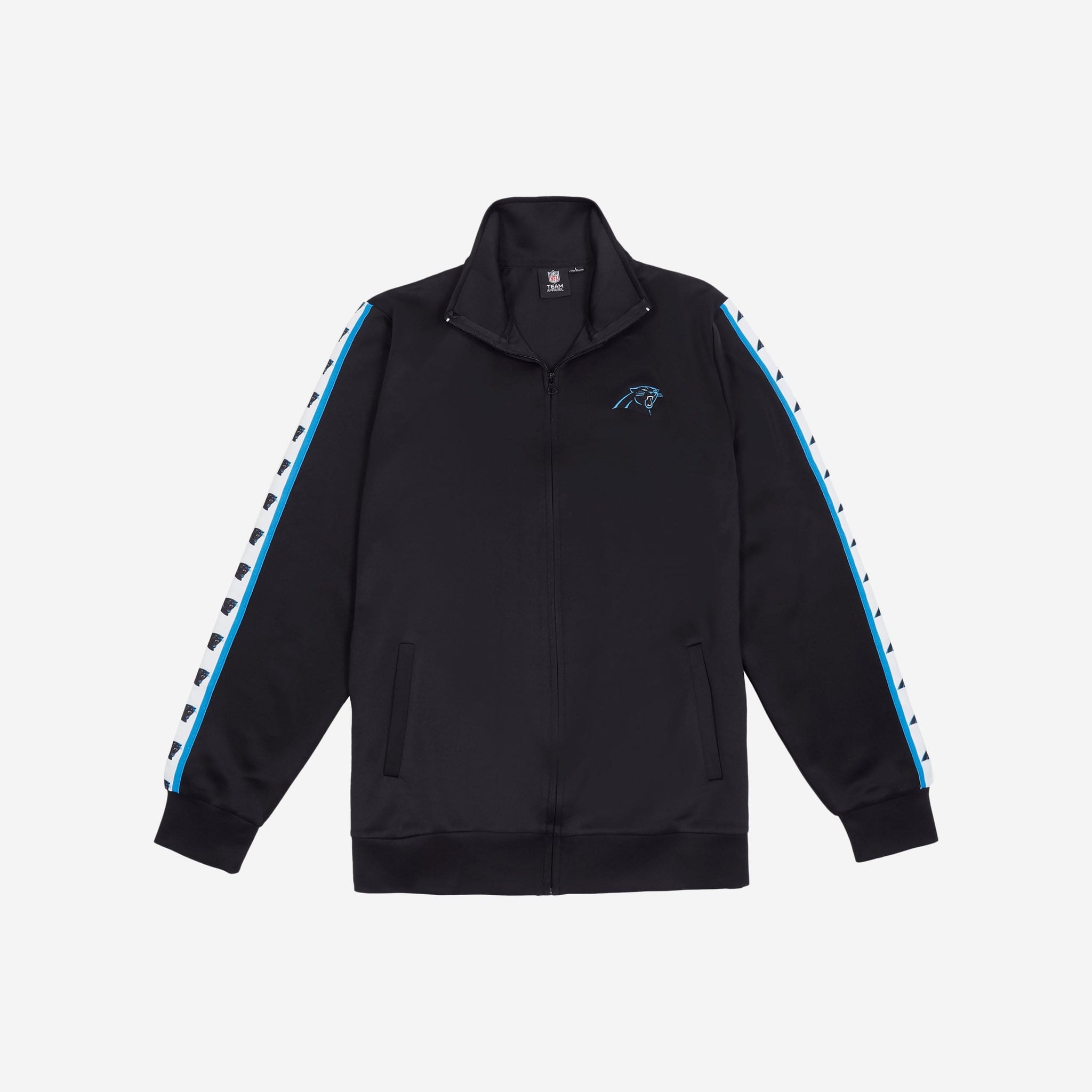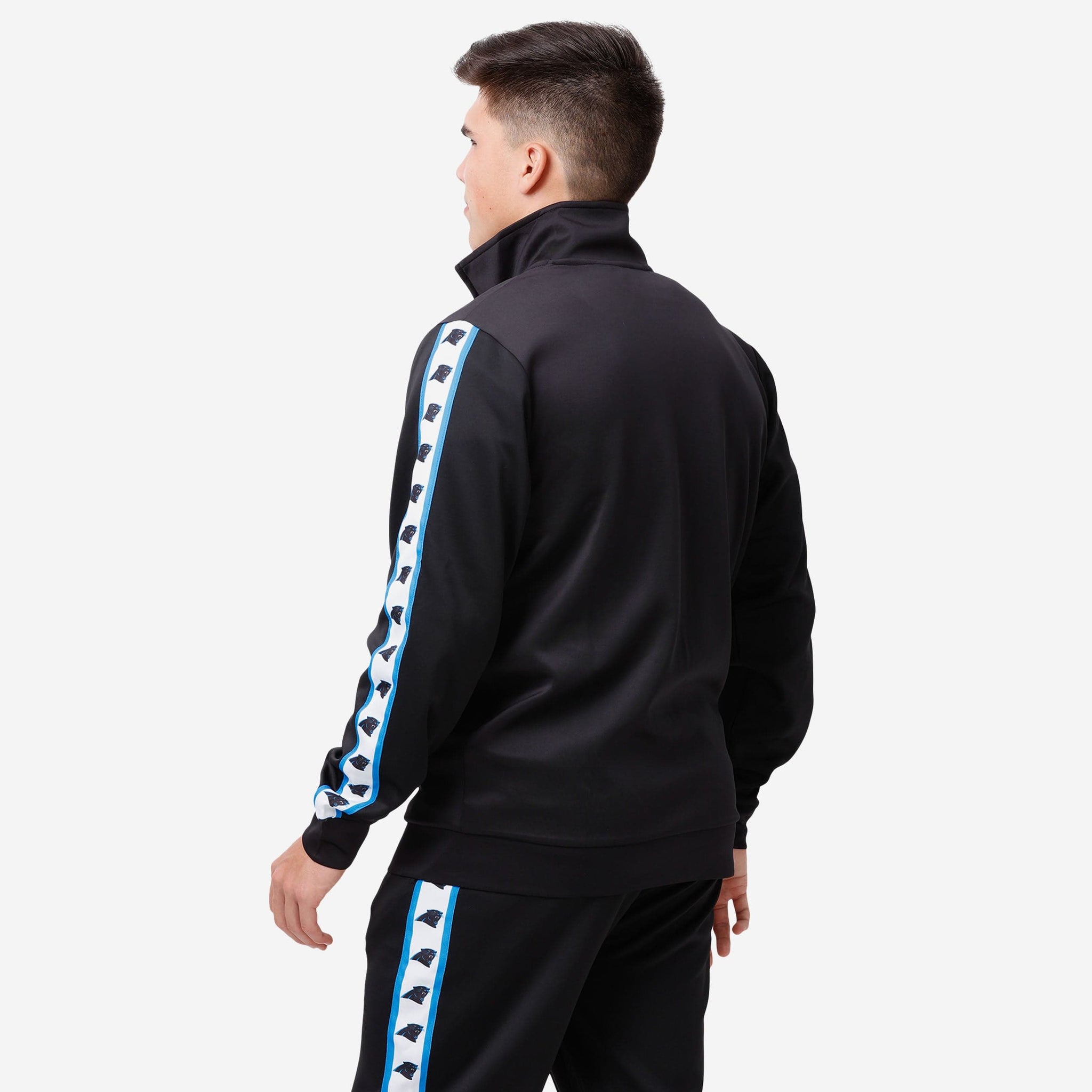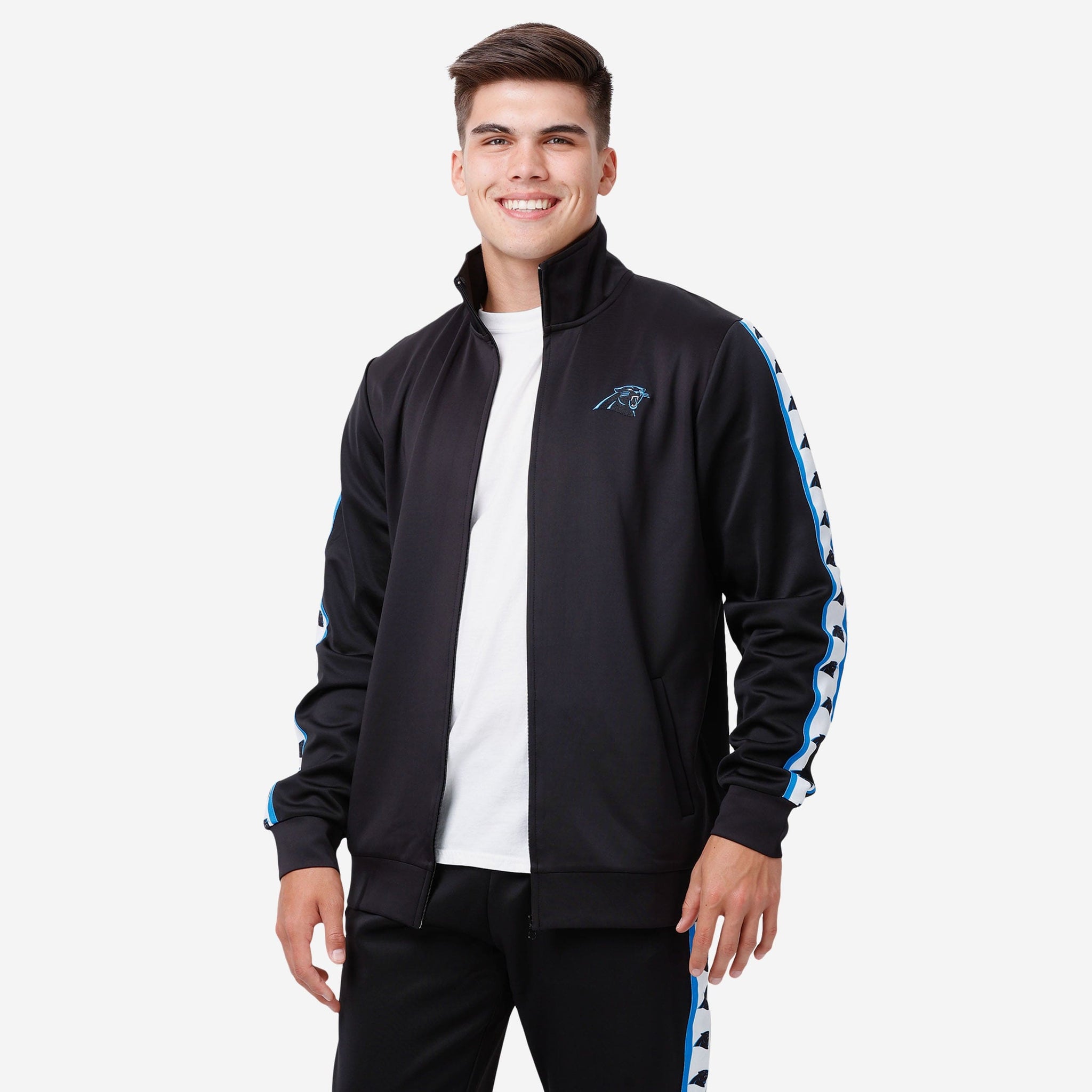 A jacket that you'll be jacked up to wear. Bundle up for your jog around the block with this Carolina Panthers Stripe Logo Track Jacket.