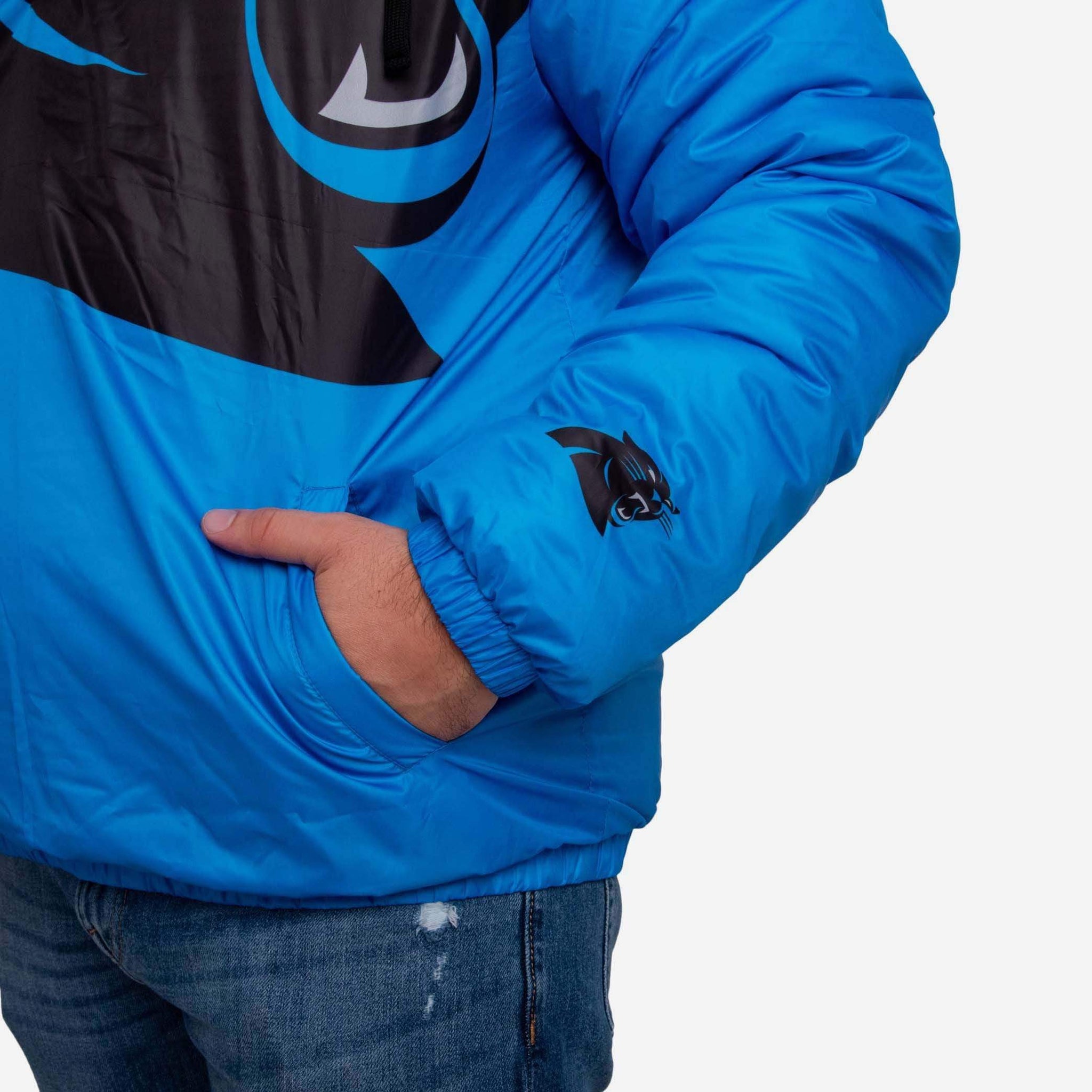 Cold weather? Blustery winds? Child's play. Winter's got nothing on you. That's because you'll be rocking this Carolina Panthers Tundra Puffy Poly Fill Pullover. Warm up with the fiery team spirit you'll be proudly showing off.