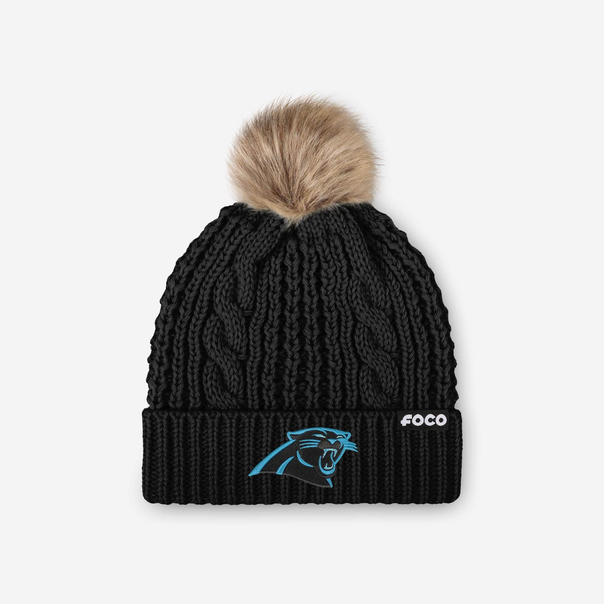 Putting together the ultimate fit for the tailgate and beyond? Make sure to get your head in the game with the Carolina Panthers Women's Faux Fur Pom Beanie!