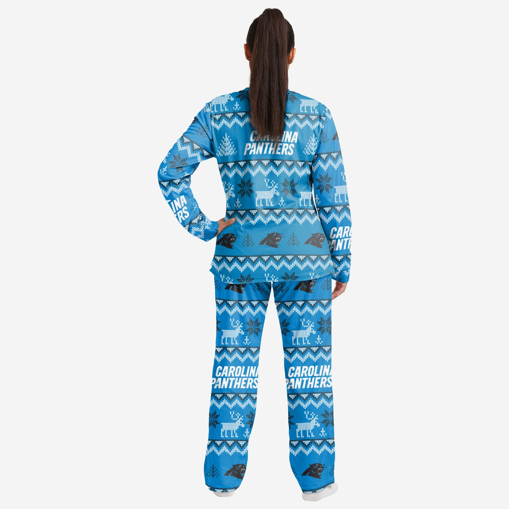Carolina Panthers Womens Ugly Pattern Family Holiday Pajamas FOCO - FOCO.com