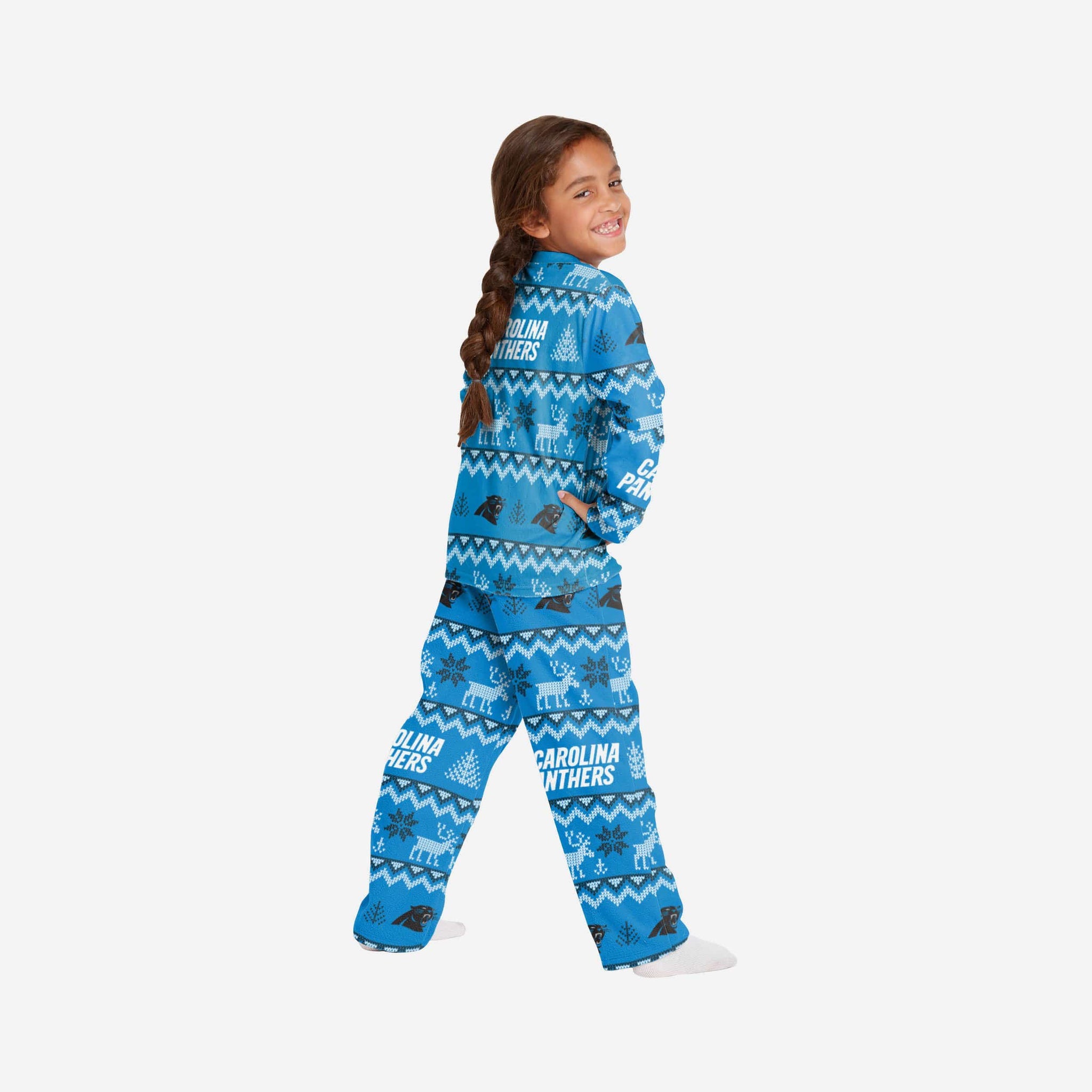 Get some matching family pajamas and dress to impress this holiday season! You won't want to miss these kids' team pajamas! These youth PJ's are comfortable and show off your team spirit in the form of some sweet youth jammies. Introducing the Carolina Panthers Youth Ugly Pattern Family Holiday Pajamas! Don't forget to take your holiday photo with the whole family wearing matching Christmas pajamas!