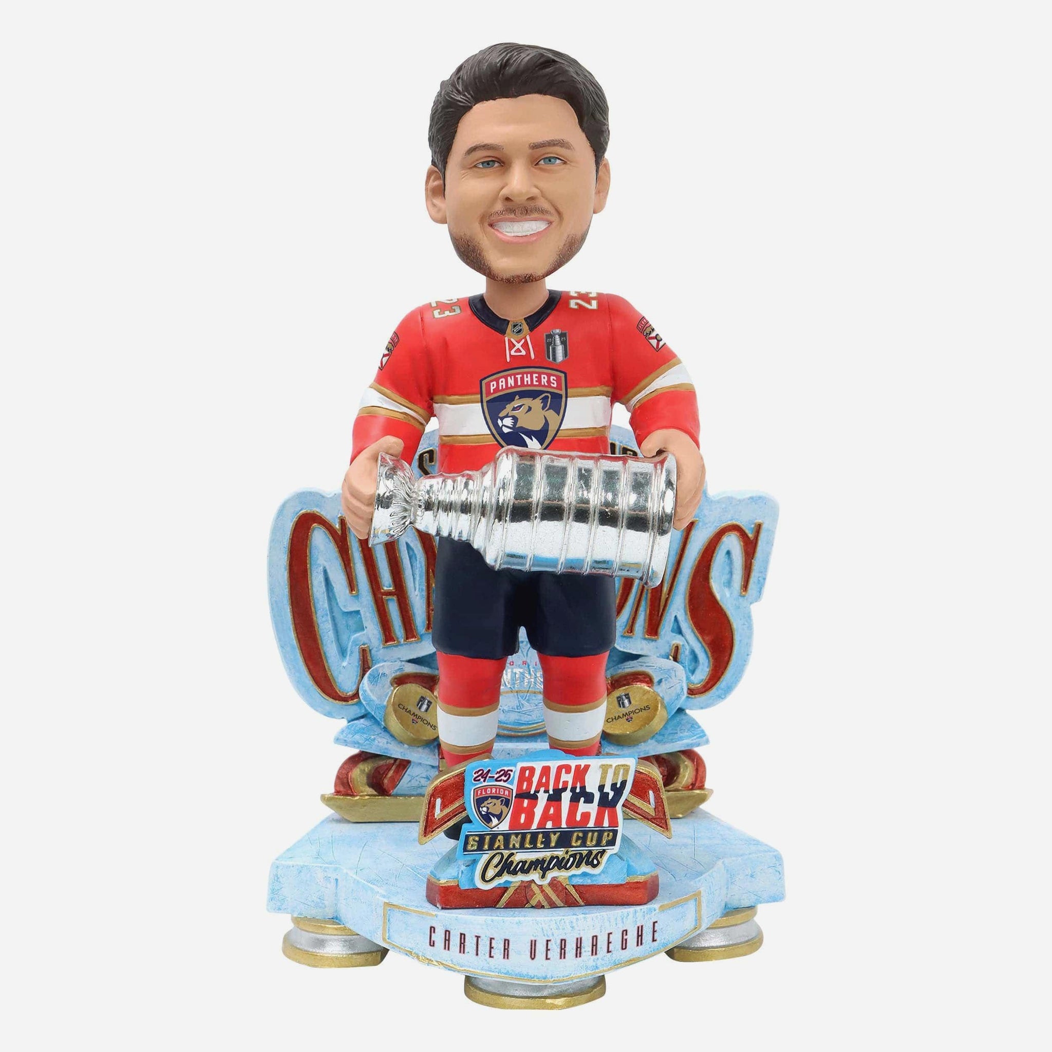 The Cup is theirs. Now the celebration is yours! Skate into the winners circle and get your victory party started with the Carter Verhaeghe Florida Panthers 2025 Back To Back Stanley Cup Champions Celebration Bobblehead.
