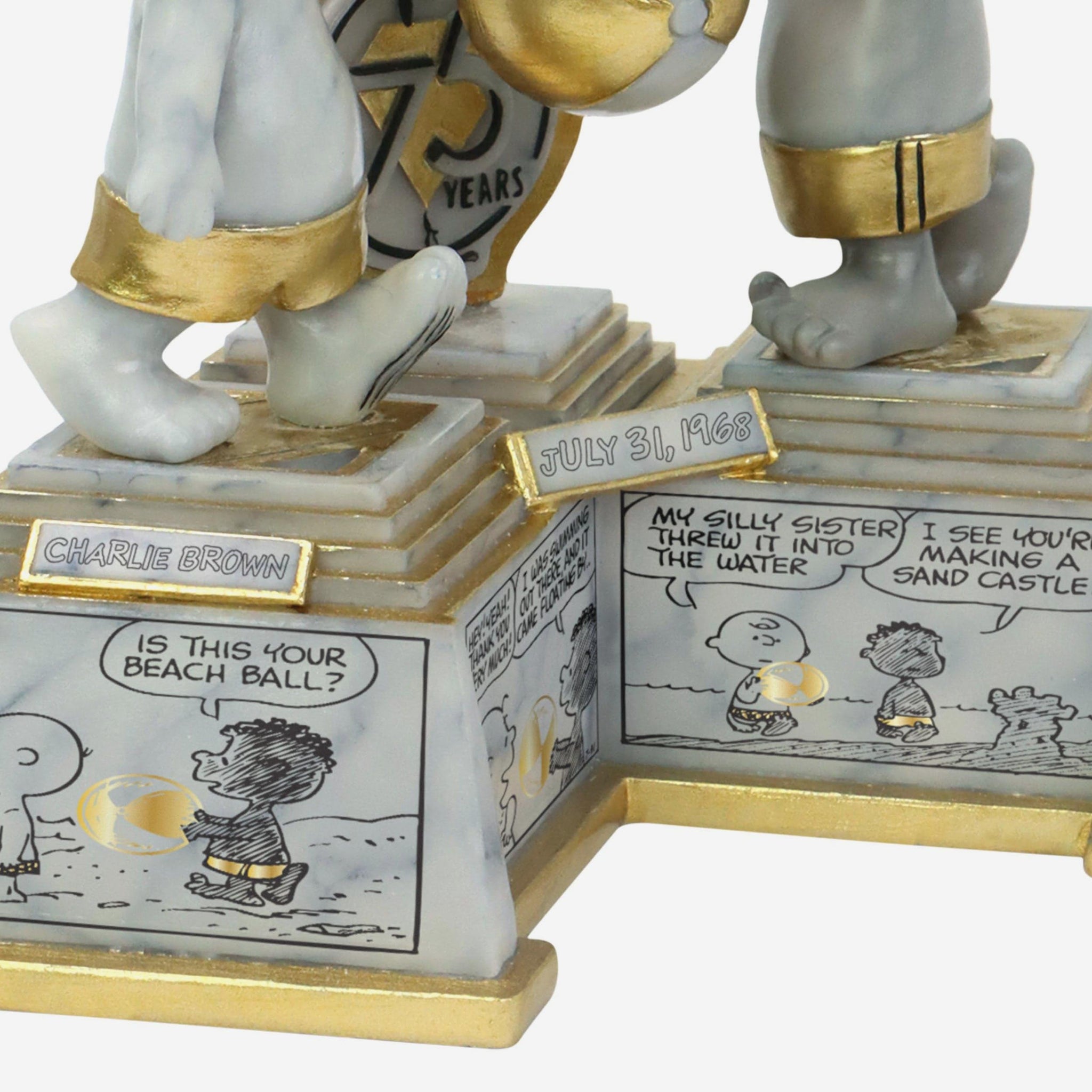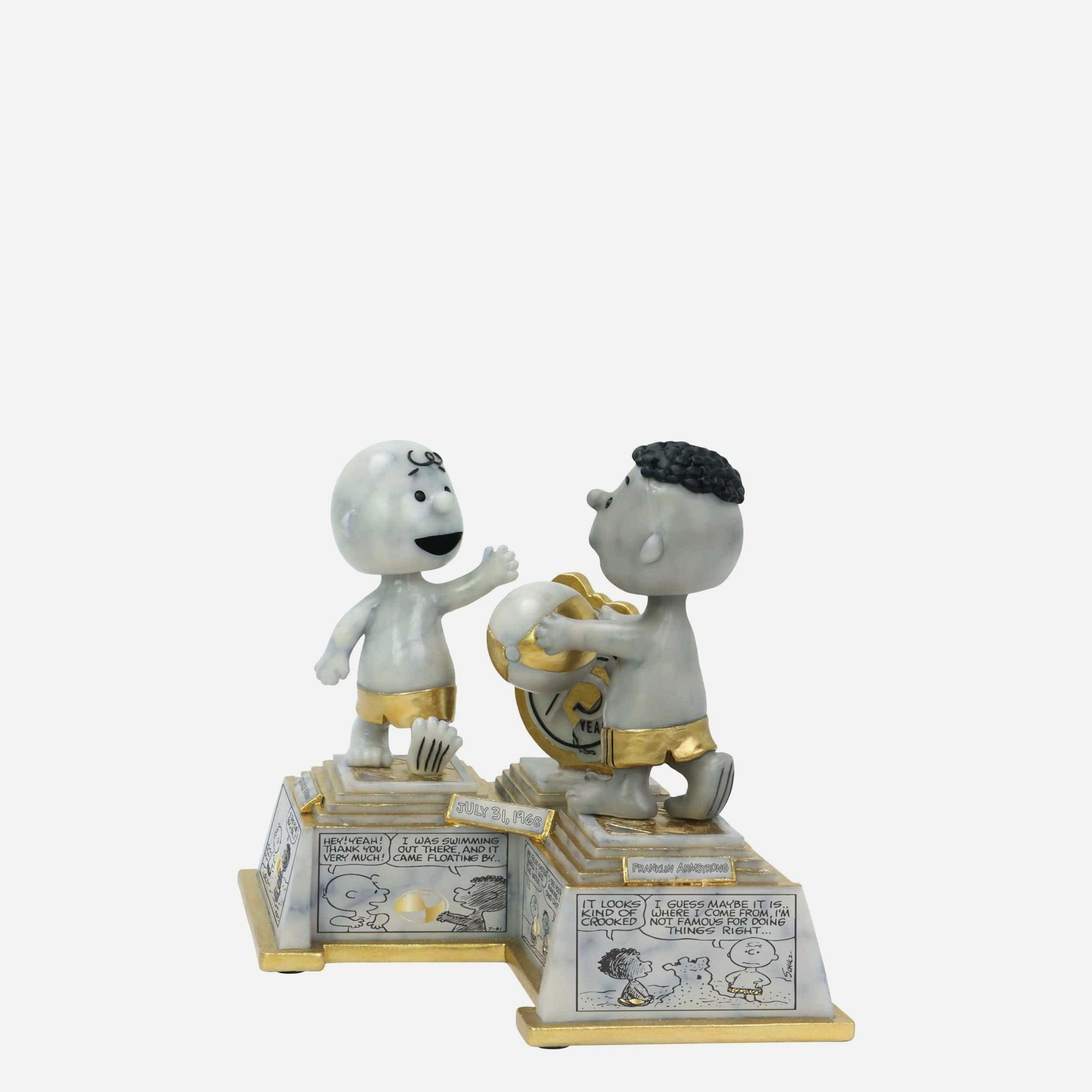 Celebrate 75 years of timeless Peanuts magic with this Charlie Brown & Franklin 75 Years of Peanuts First Appearance Comic Strip Dual Bobblehead! Inspired by the iconic July 31st, 1968 comic strip, this commemorative collectible brings history, heart, and nostalgia together in a beautifully crafted scene honoring the moment Franklin first stepped into the Peanuts world.