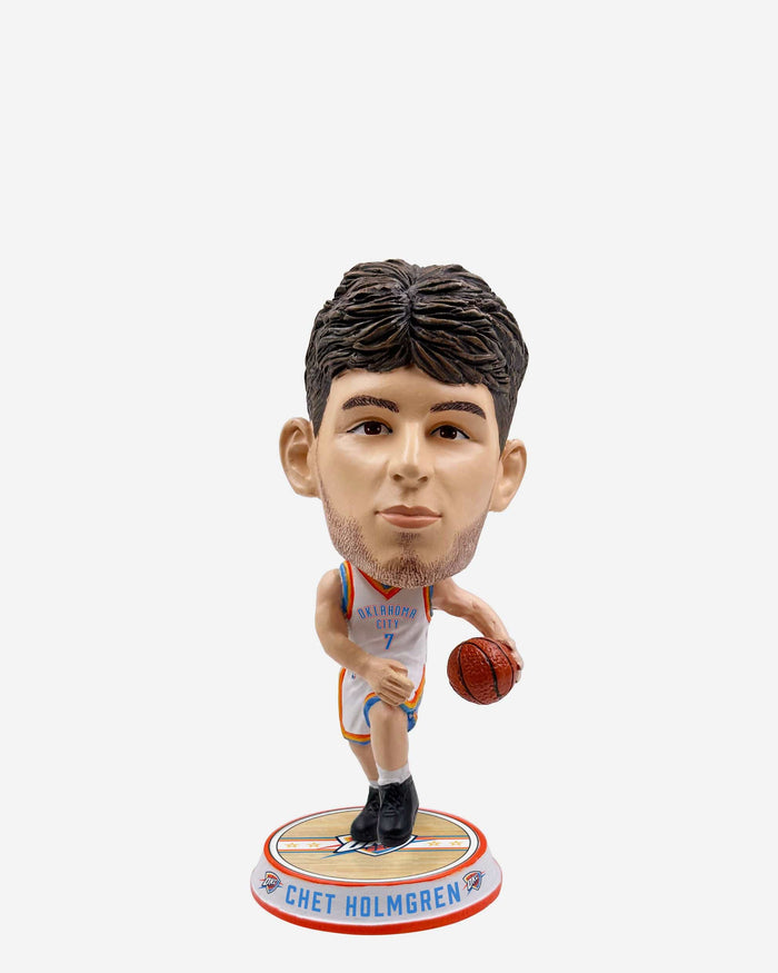 Get ready to feel the Thunder with Chet! Secure a big star in little form with this Chet Holmgren Oklahoma City Thunder Court Stripe Mini Bighead Bobblehead.