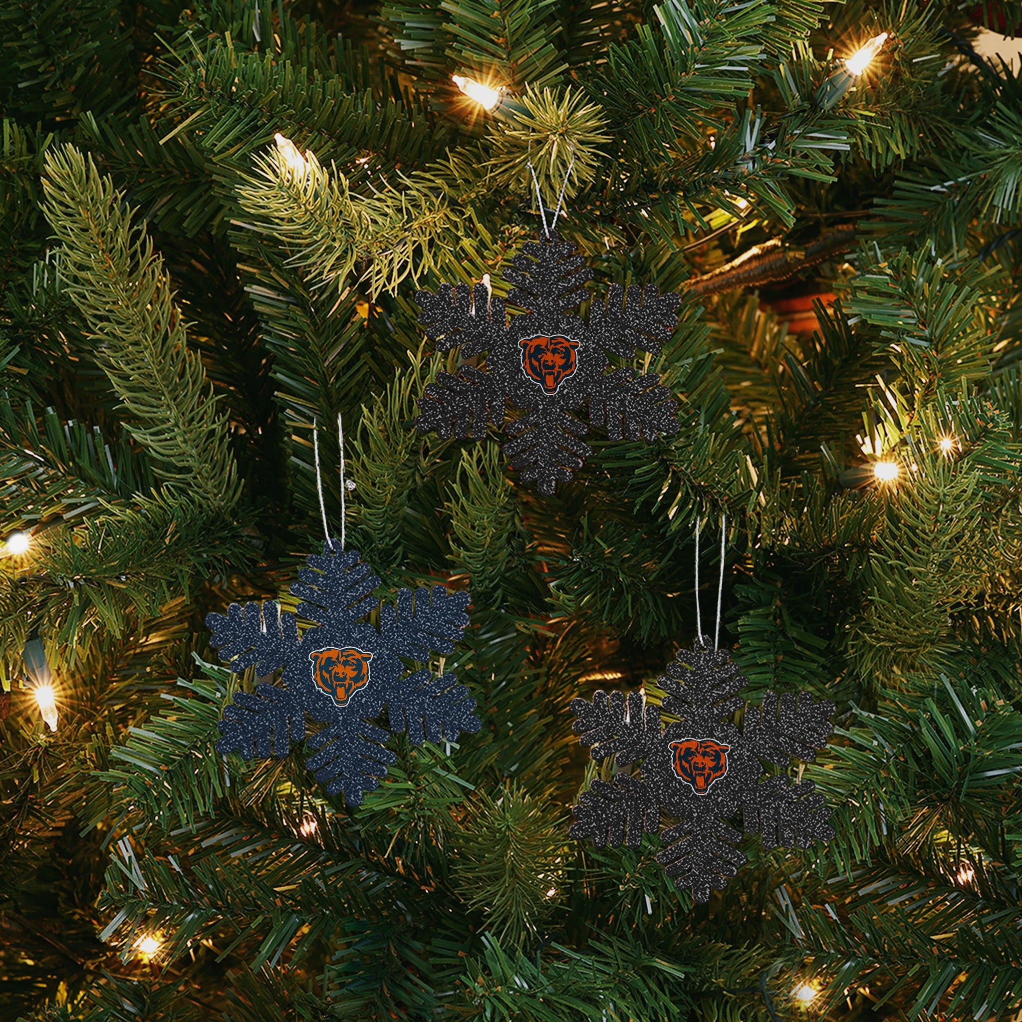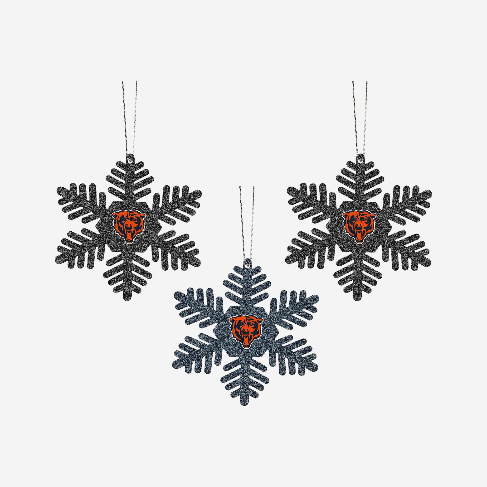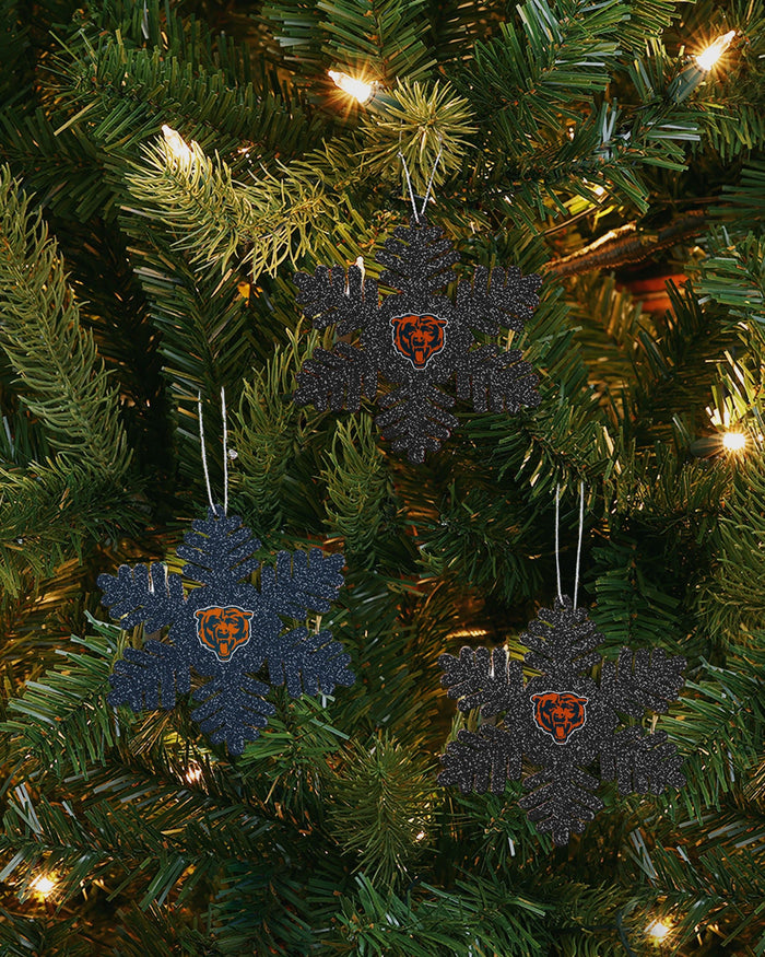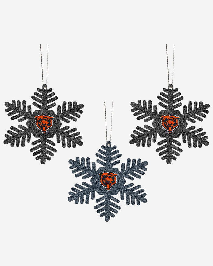 Chicago Bears 3 Pack Metal Glitter Snowflake Ornament FOCO - FOCO.com