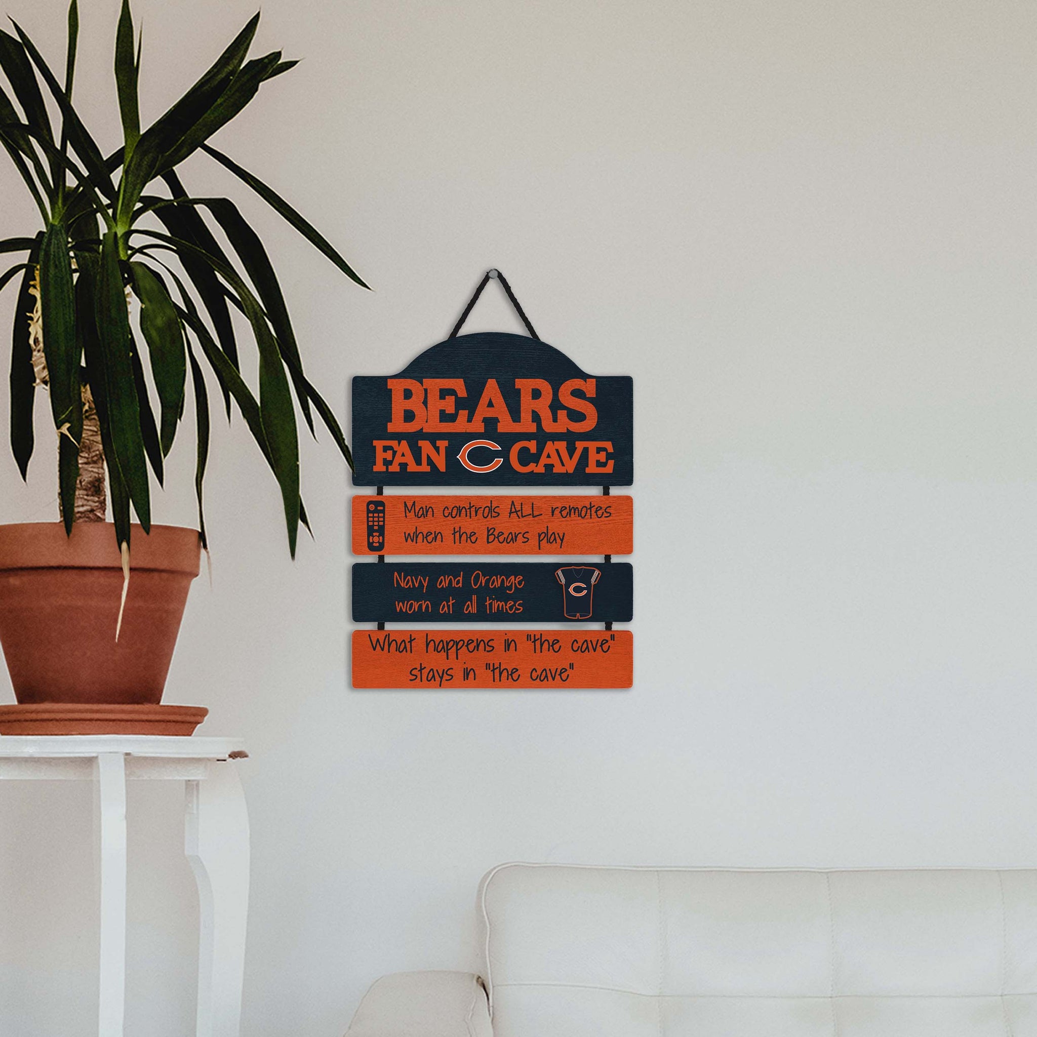 So, you're hosting the big watch party, and want to make sure you've decorated enough to impress your fellow fans. We've got you covered. This Chicago Bears Fancave Sign lets everyone know who the fan in charge is and gives your home field plenty of advantage.