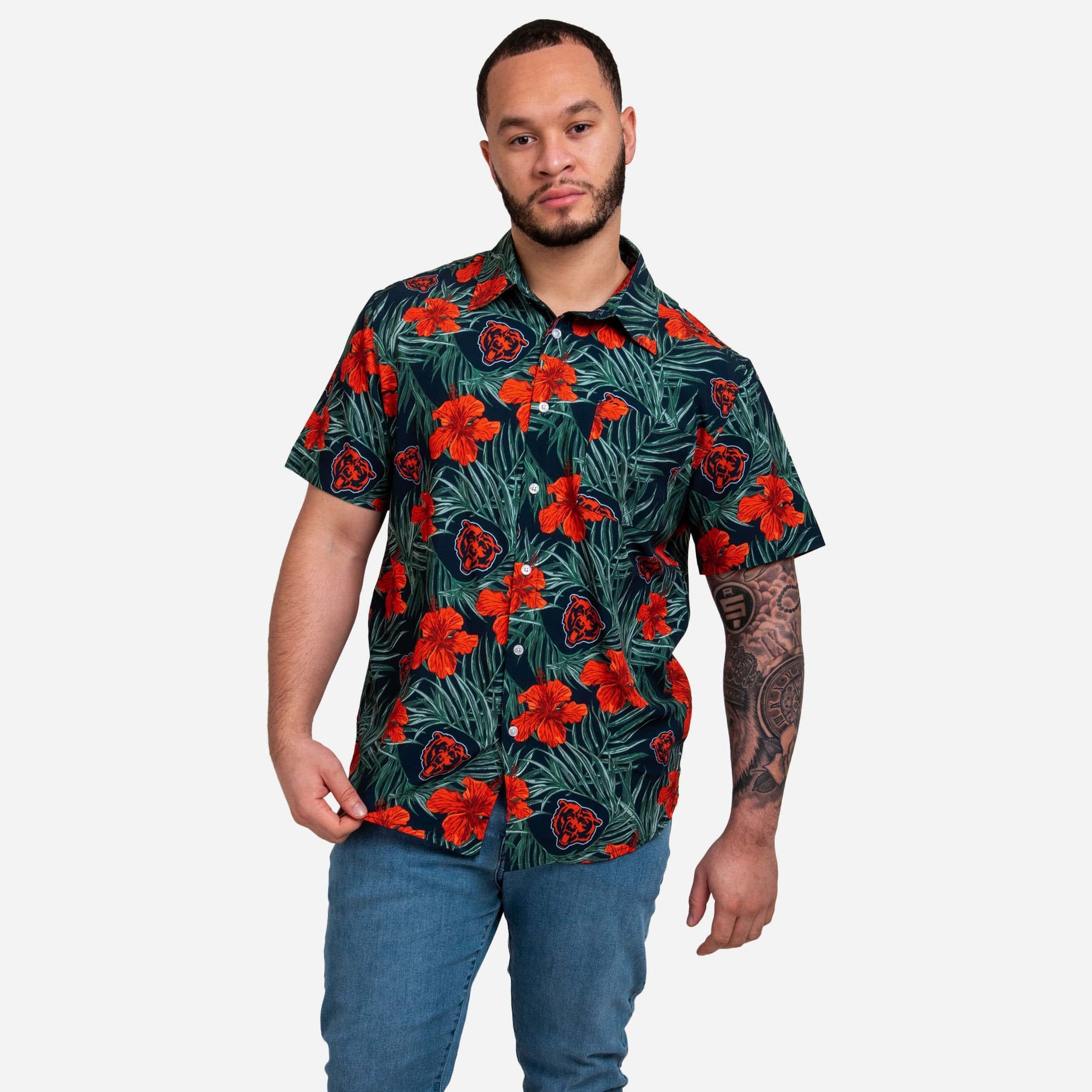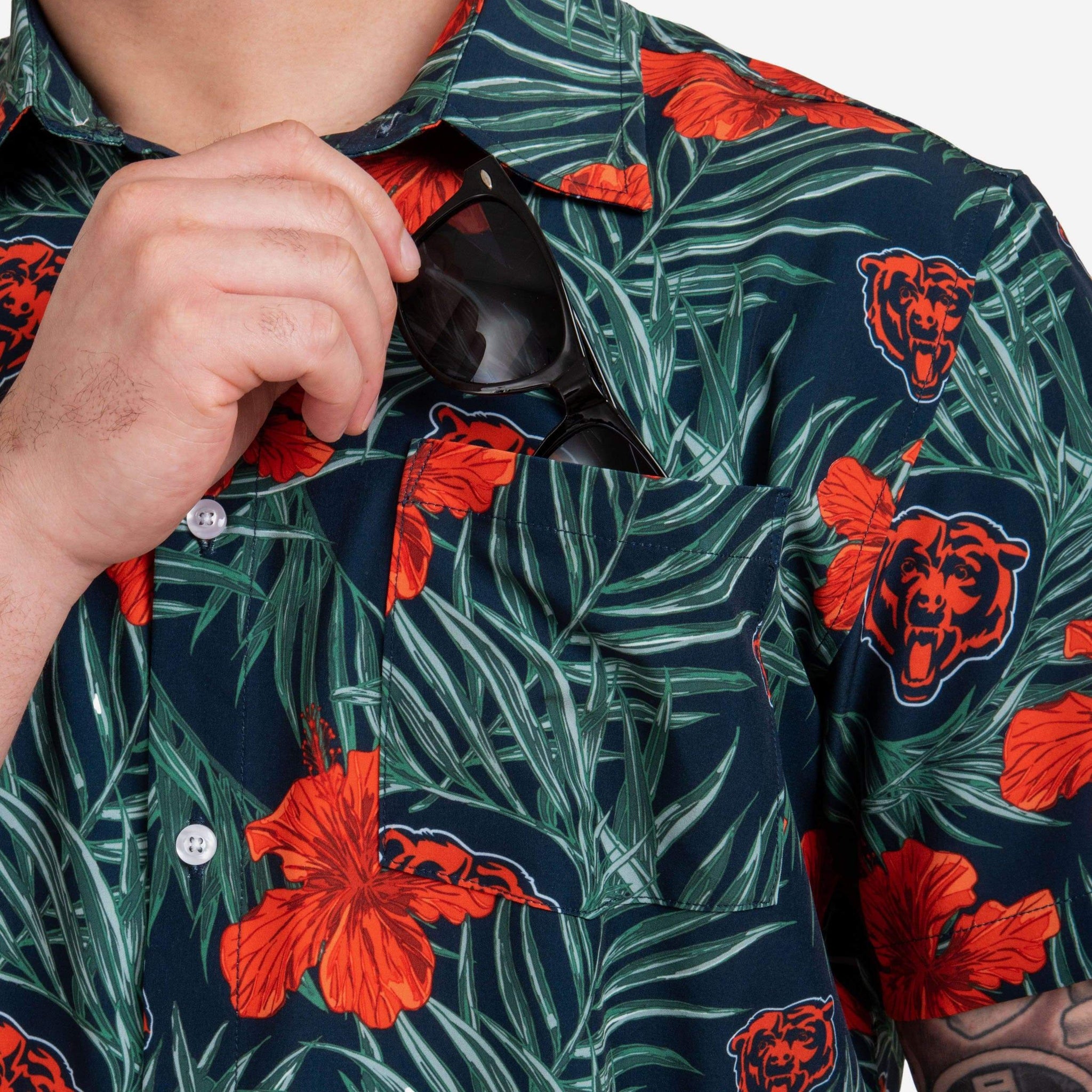 Whether you're sipping a cold, delicious beverage on the beach, or just lounging on the couch watching the game on TV, this Chicago Bears Hibiscus Button Up Shirt is the perfect way to show off your fan fashion sense at literally any occasion.