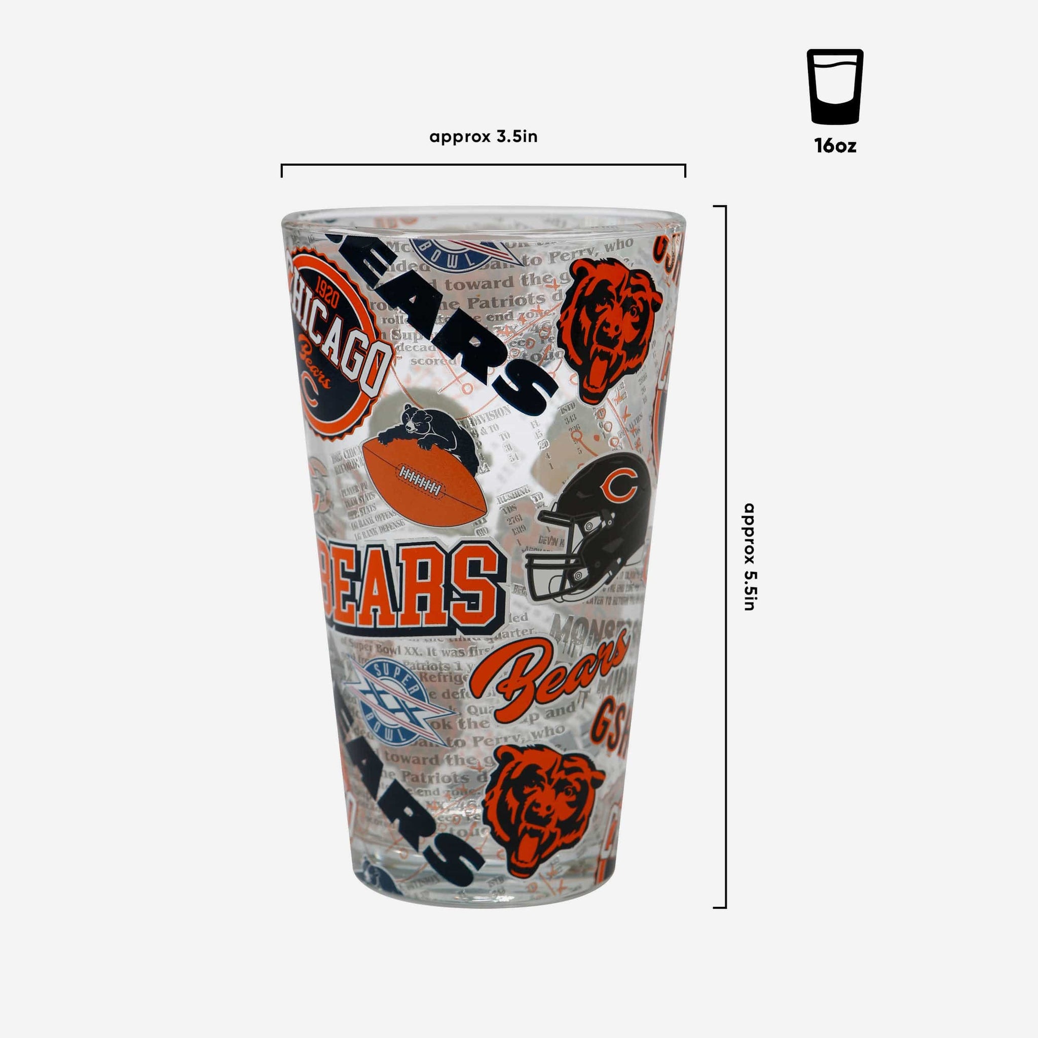 A blast from the past served in one fine pint. Introducing the Chicago Bears Historic Print Pint Glass. Let's make history.