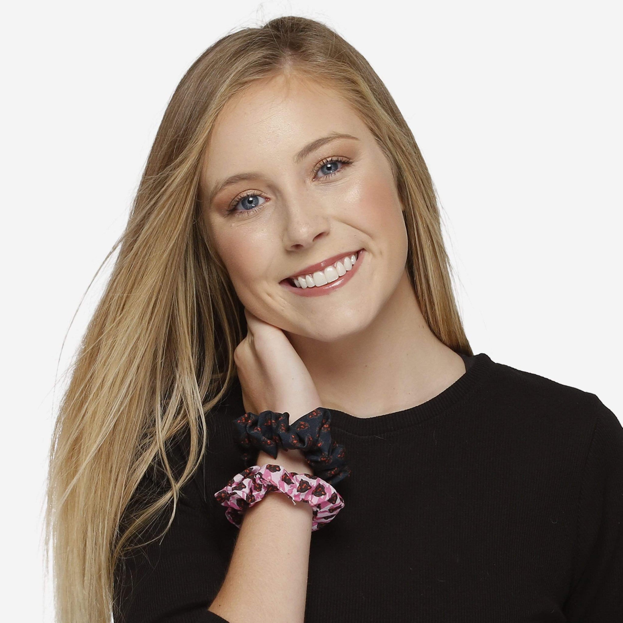 - Three-pack of hair scrunchies with unique designs, because three scrunchies are better than one