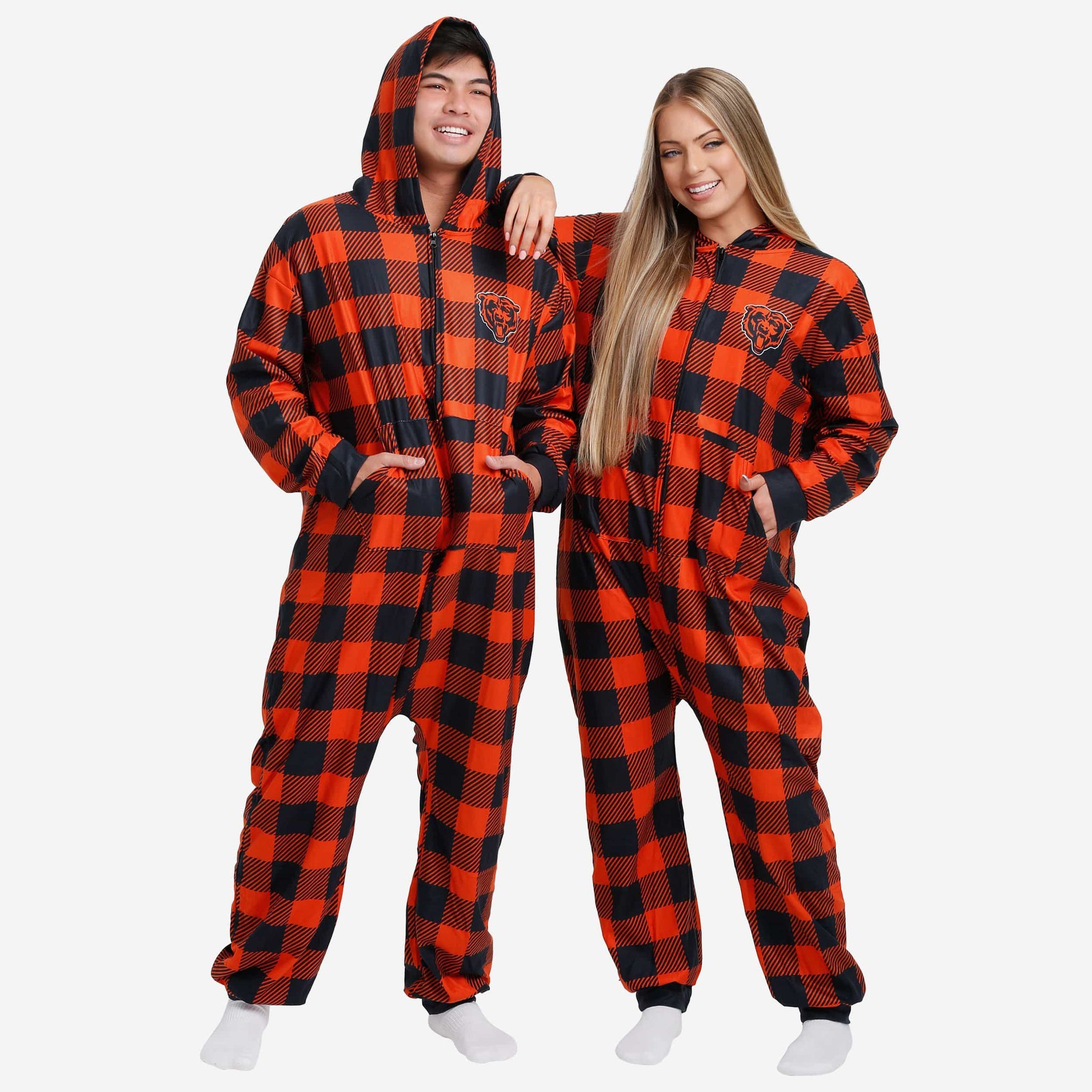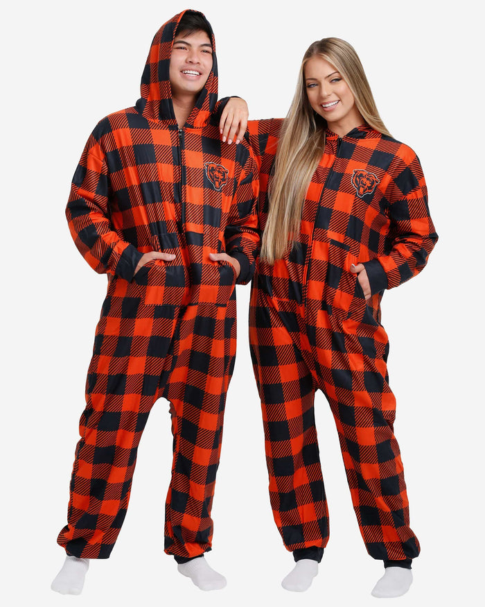 Get some matching family pajamas and dress to impress this holiday season! You won't want to miss these onesie team pajamas! These men's and women's PJ's are comfortable and show off your team spirit in the form of some sweet one piece jammies. Introducing the Chicago Bears Plaid One Piece Pajamas! Don't forget to take your holiday photo with the whole family wearing matching Christmas pajamas!