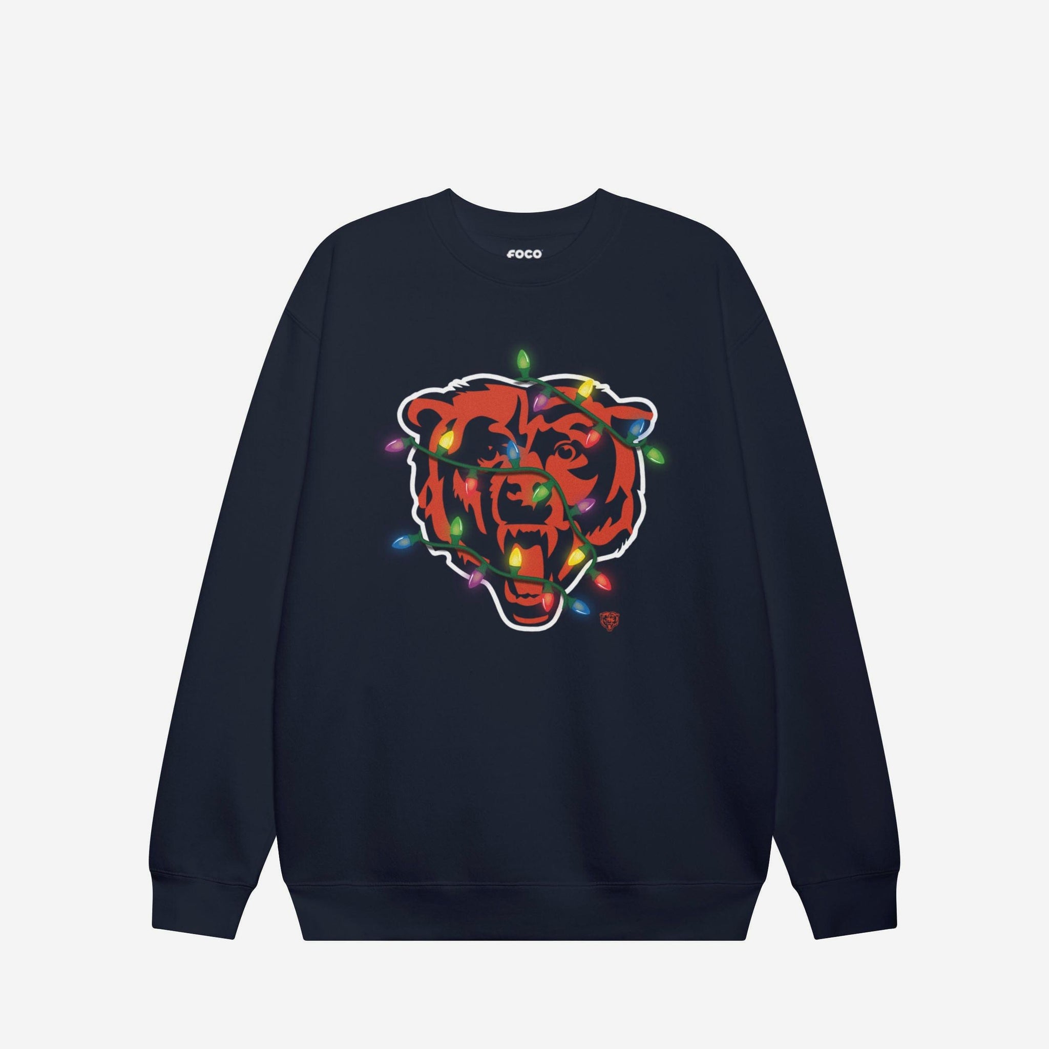 Chicago Bears Primary Logo Holiday Lights Crew Neck Sweatshirt FOCO Black S - FOCO.com