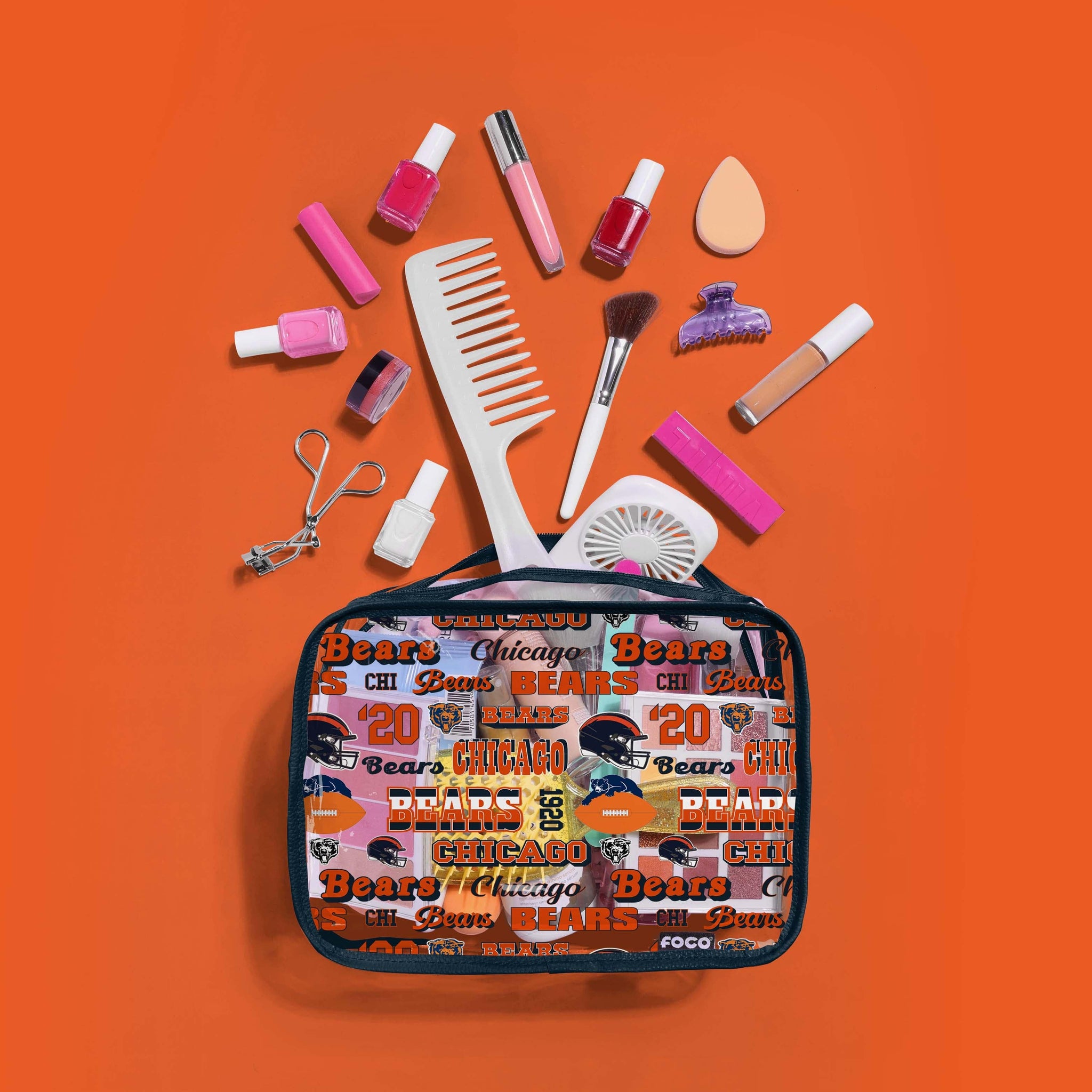 Lipstick. Hair care. Fandom. Get ready to carry it all! Wherever you go, let everyone clearly see which team you root for with a Chicago Bears Repeat Retro Print Clear Cosmetic Bag.