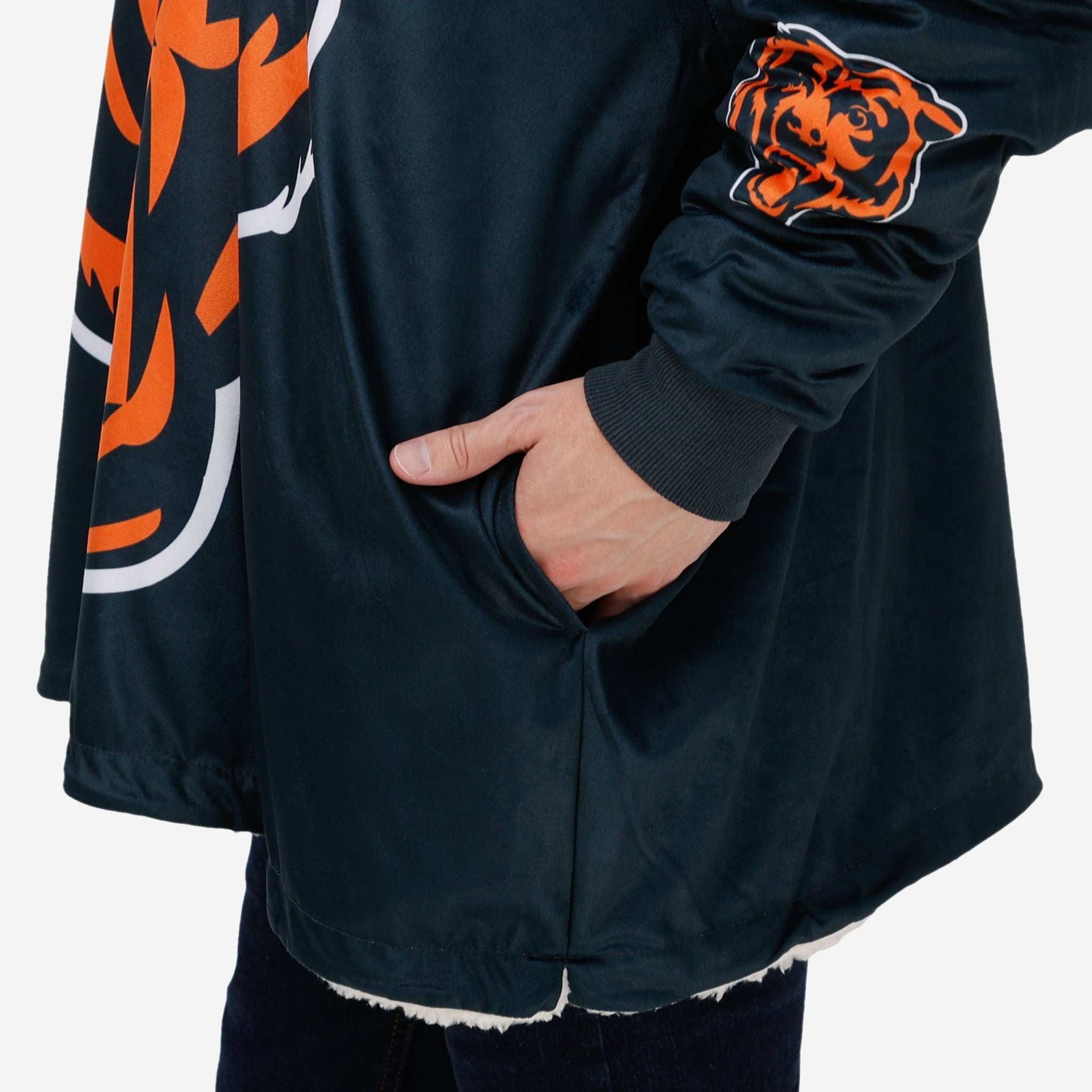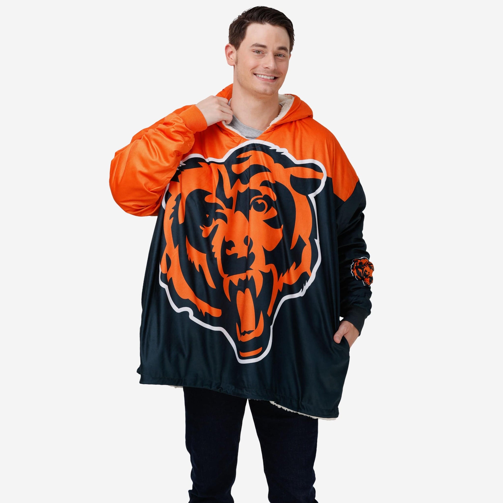 Never before has fandom looked so good and felt so relaxing. Lounge like a legend while you cheer your team on to victory by rocking this Chicago Bears Reversible Colorblock Hoodeez.