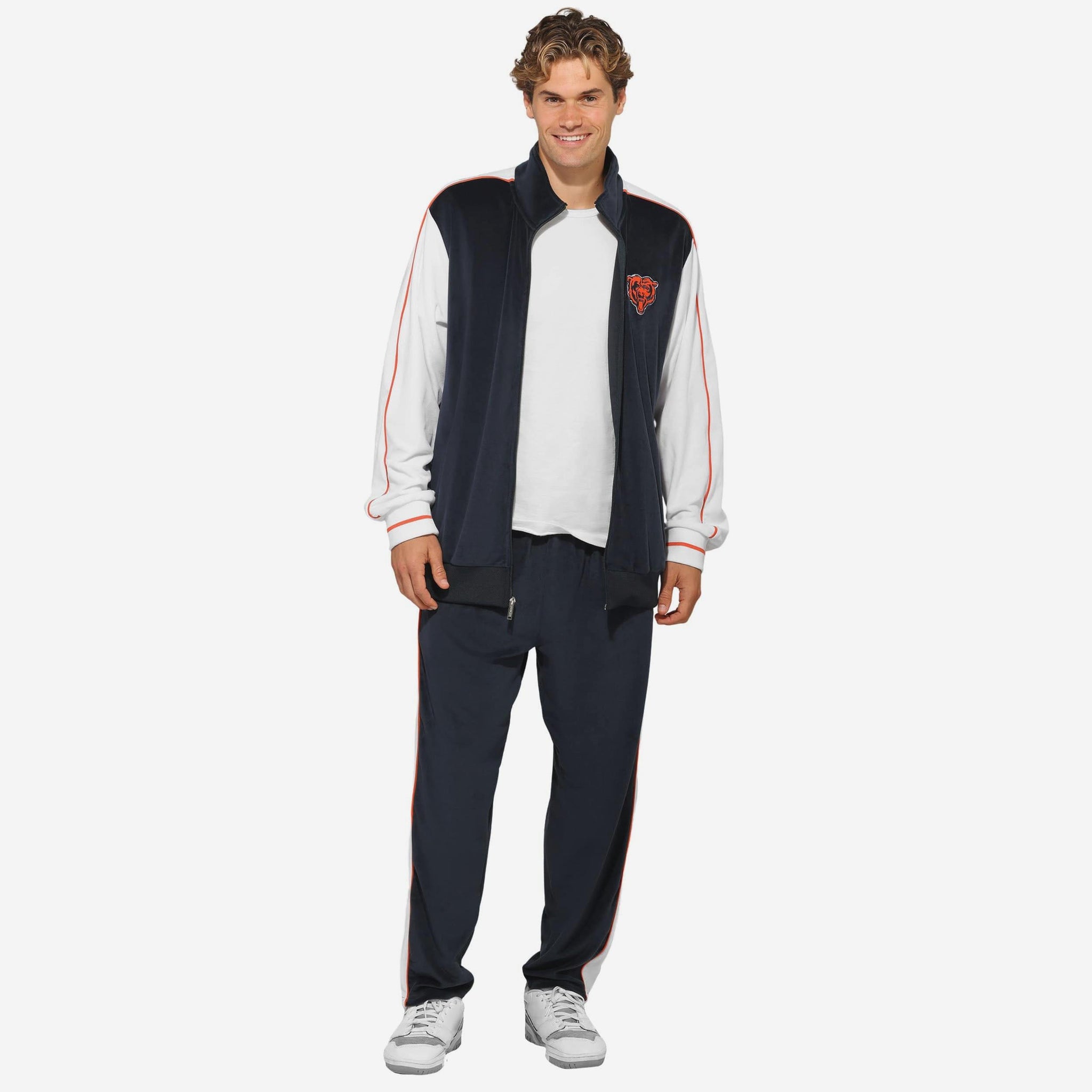 Soft, stylish, and straight-up iconic. Elevate your fan fit with this Chicago Bears Two Tone Velour Zip Up Top! Featuring a sleek two-tone design, ultra-soft velour fabric, and a full front zipper, this top brings comfort, warmth, and team pride together in one stylish package.