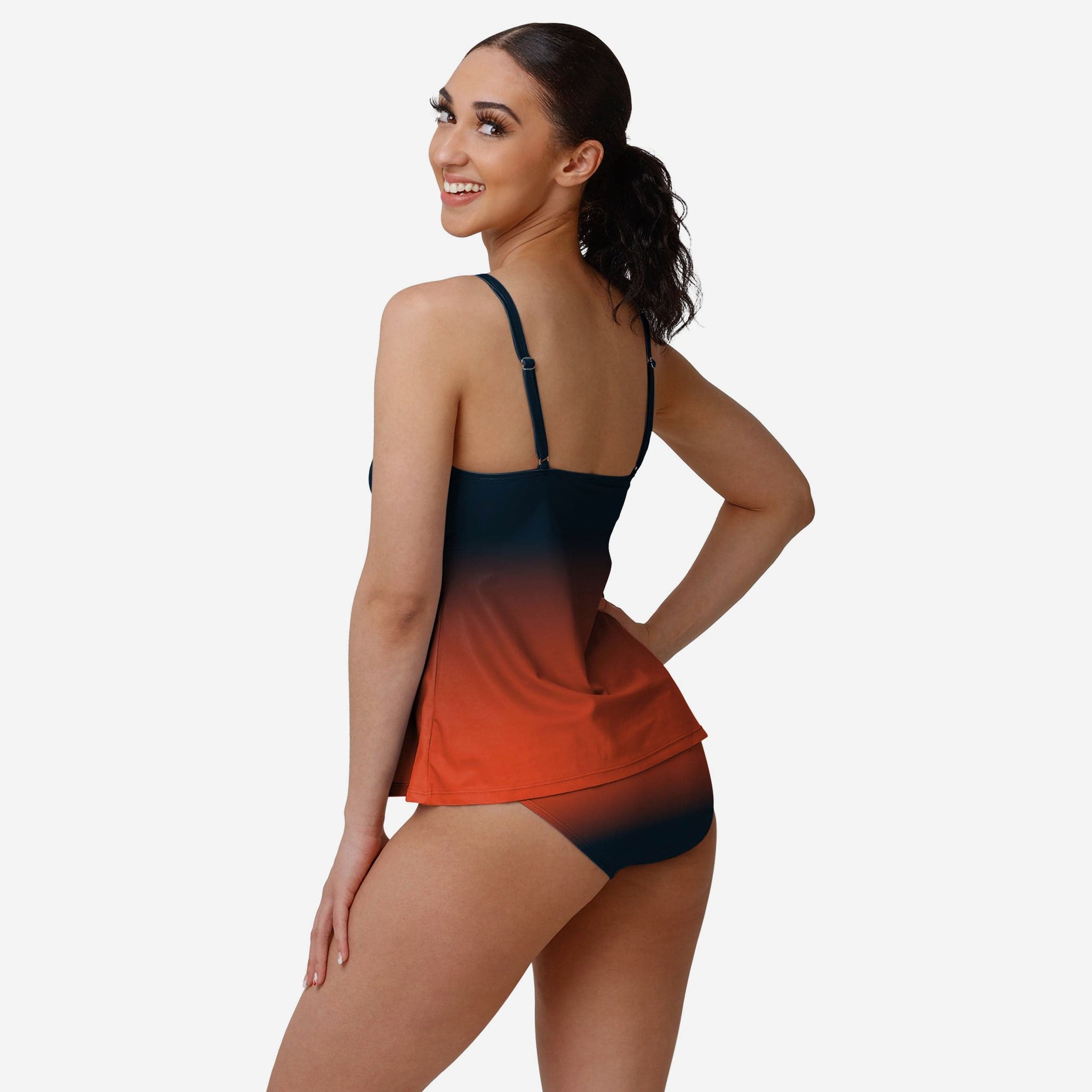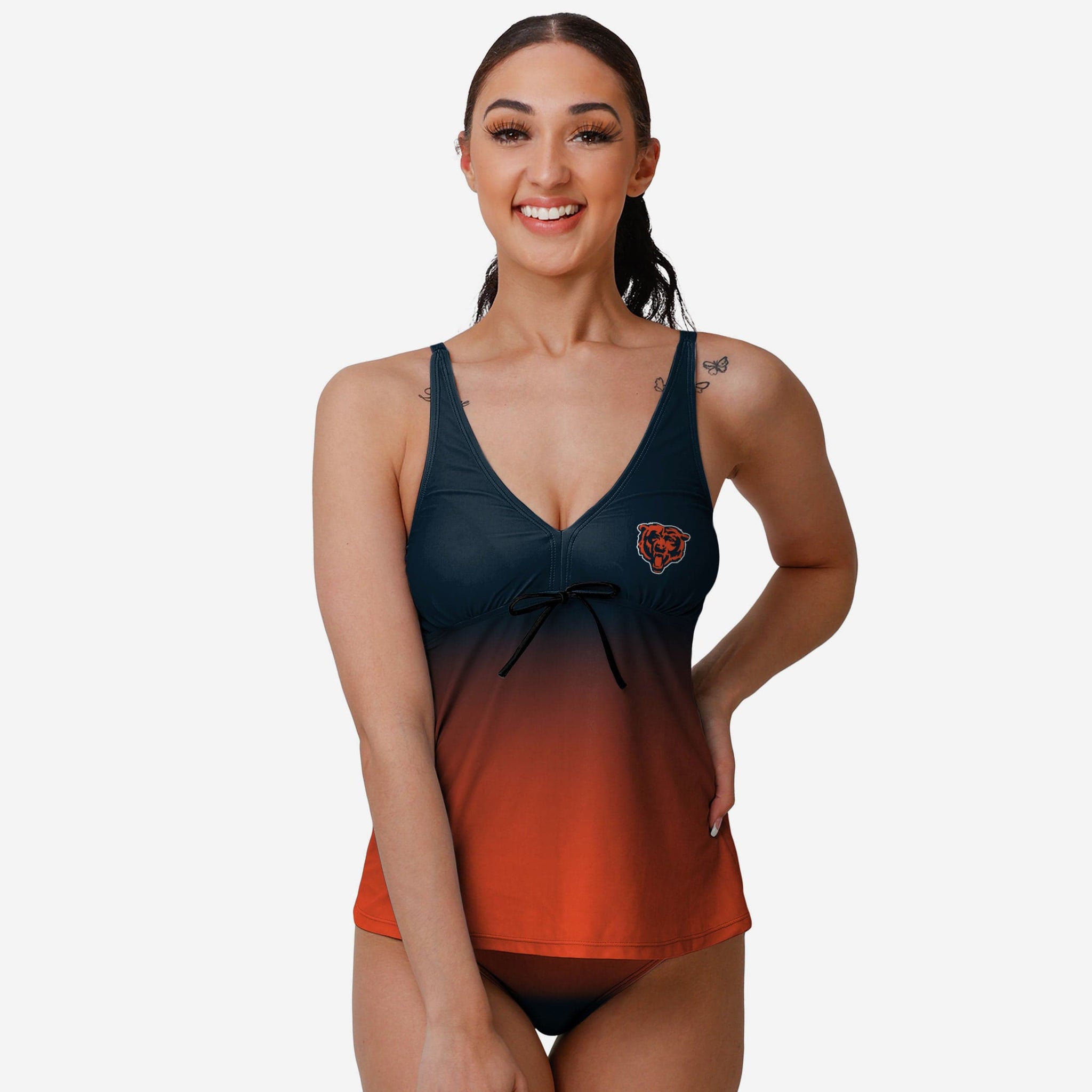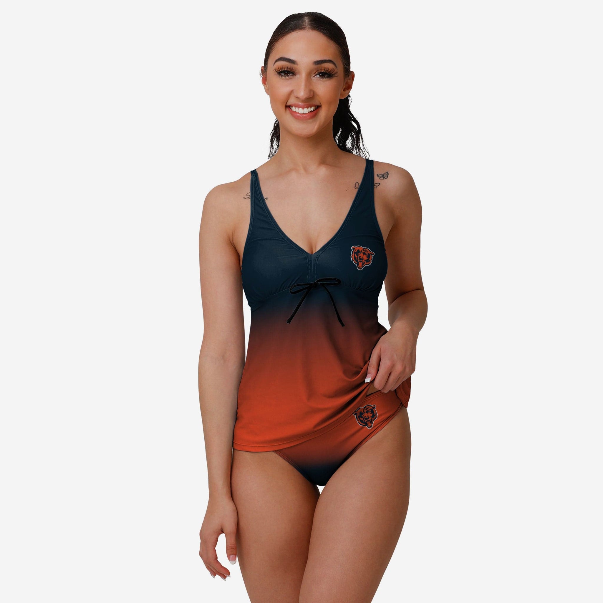 Along with sunscreen, don't forget to apply some team pride this summer by enjoying some fun in the sun with this Chicago Bears Women's Gametime Gradient Tankini!