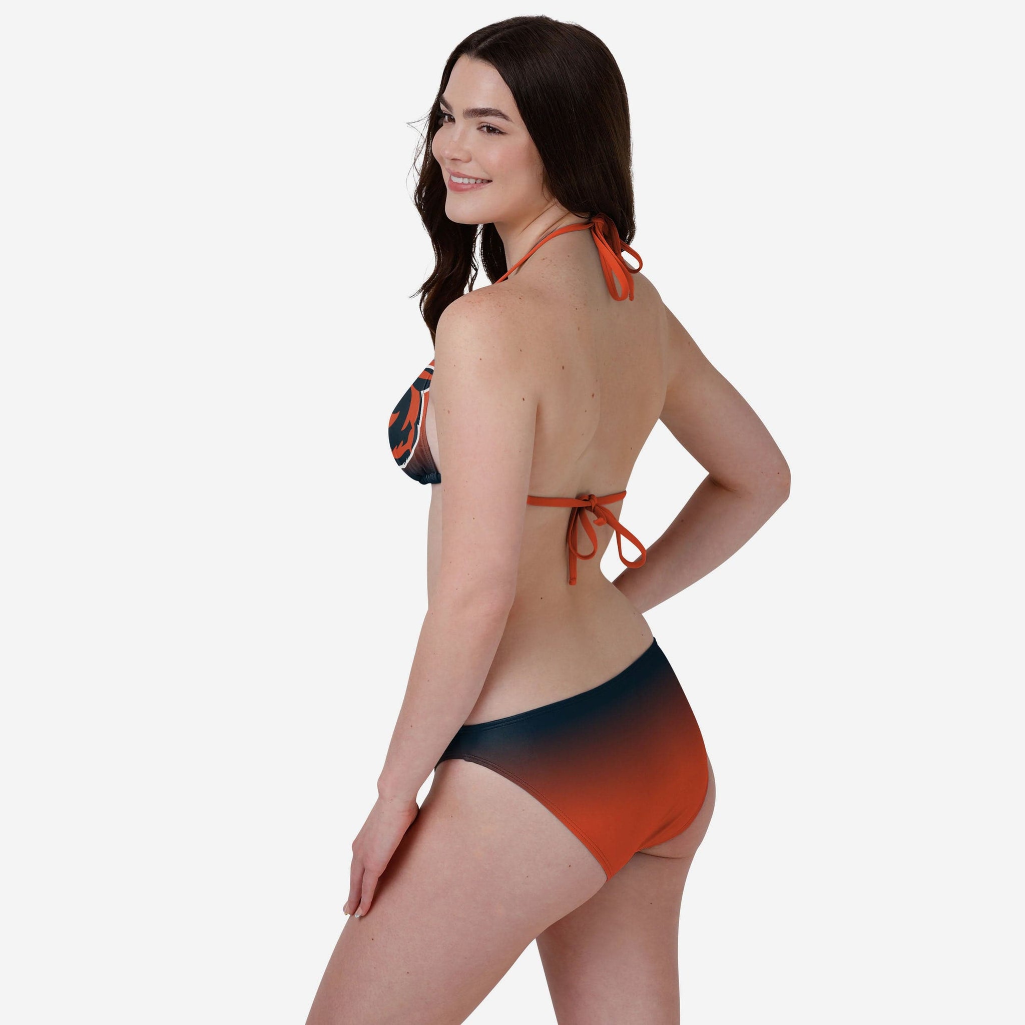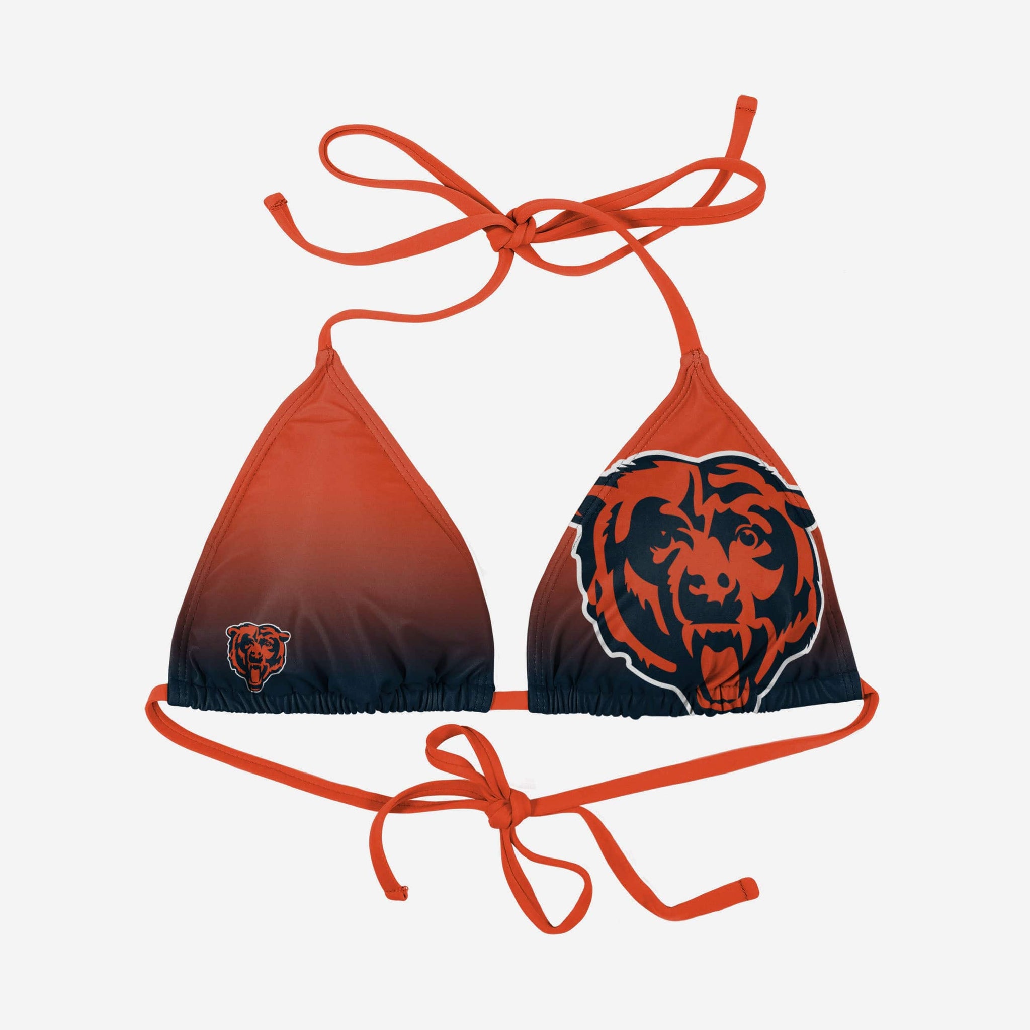 Sun, sand, and fan fun in the summer sun! Let no one second guess your team loyalty this summer with the Chicago Bears Women's Gradient Big Logo Bikini Top.