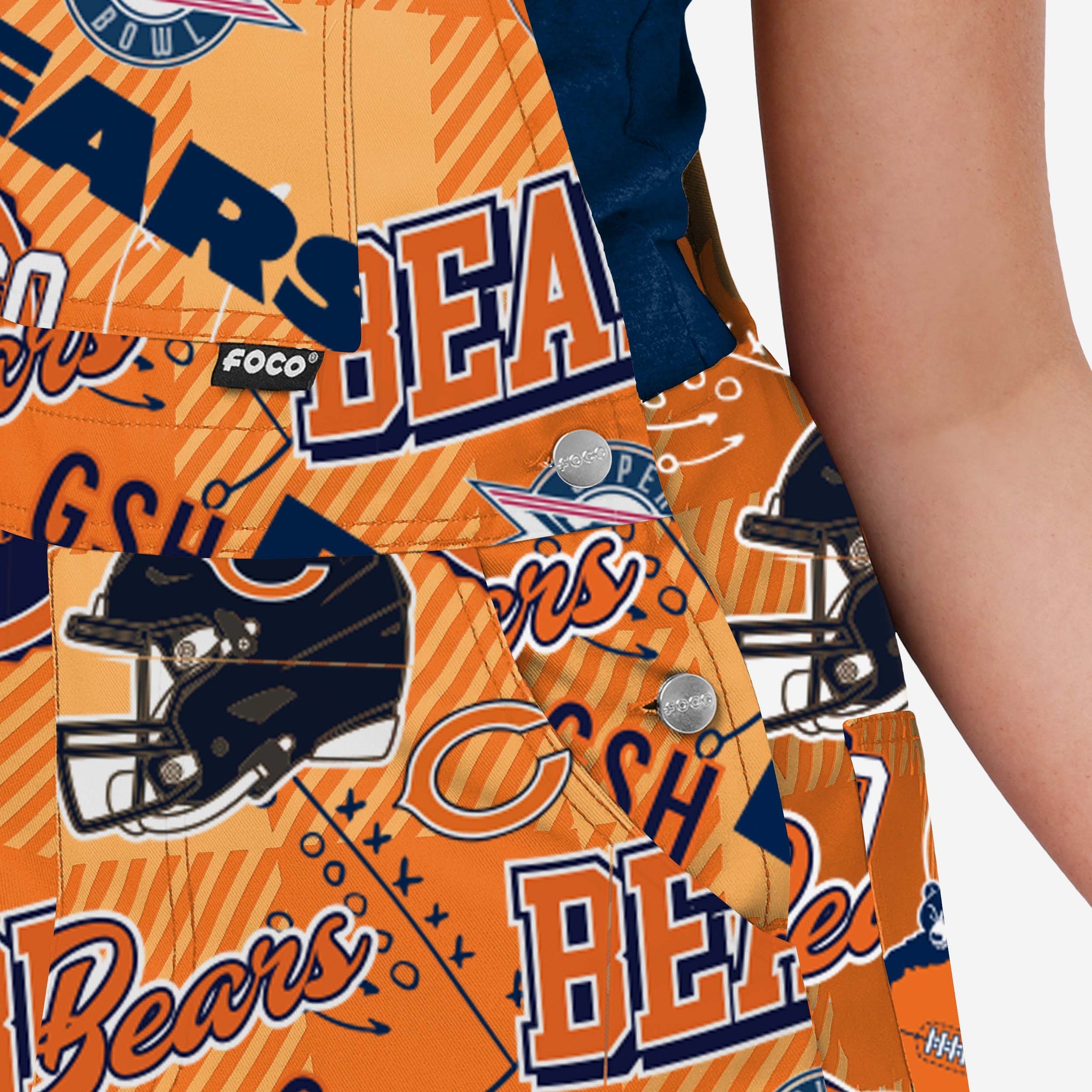 Chicago Bears Womens Historic Print Bib Overalls FOCO - FOCO.com
